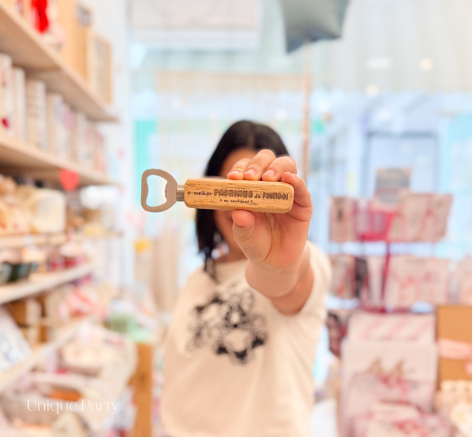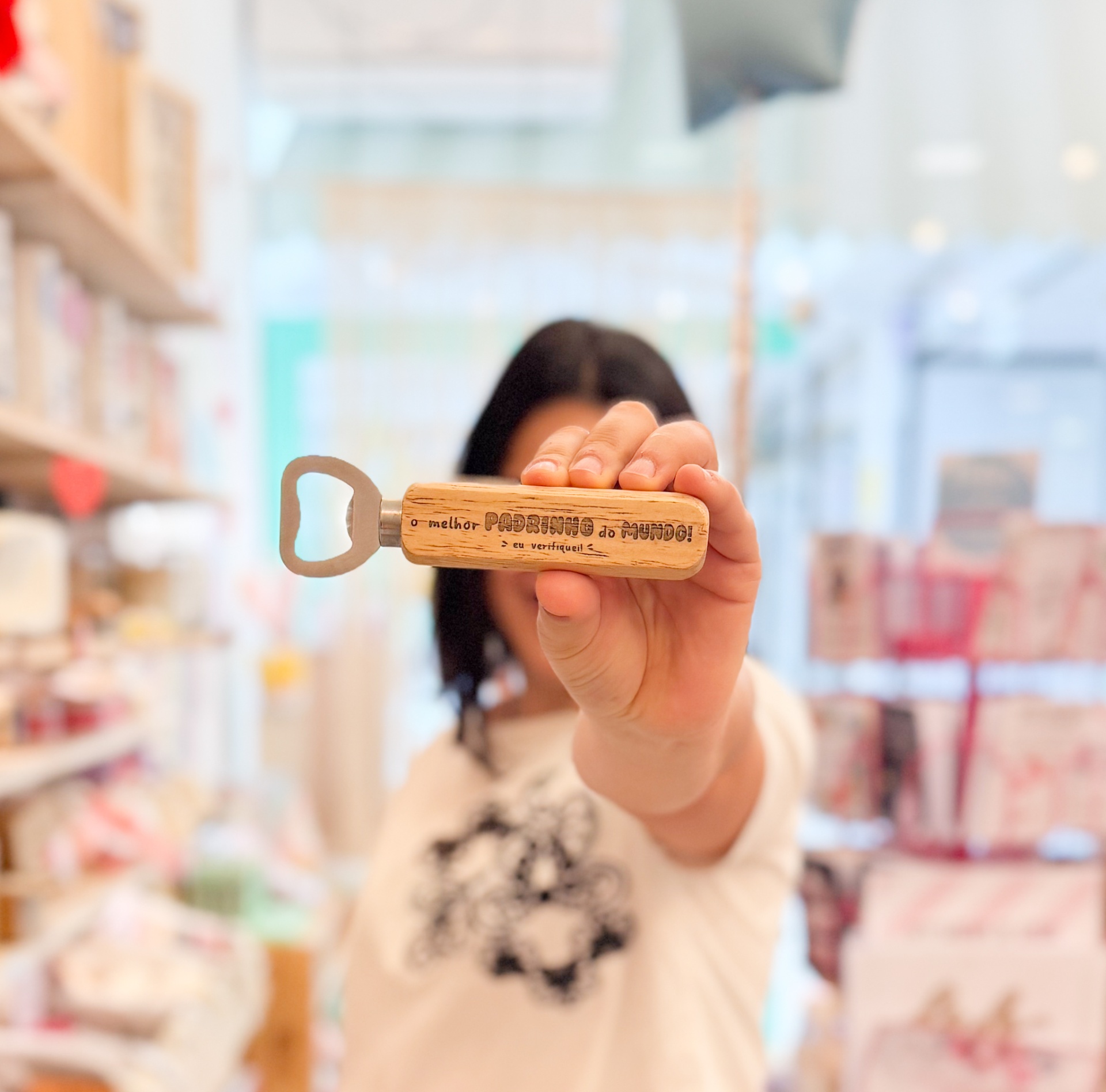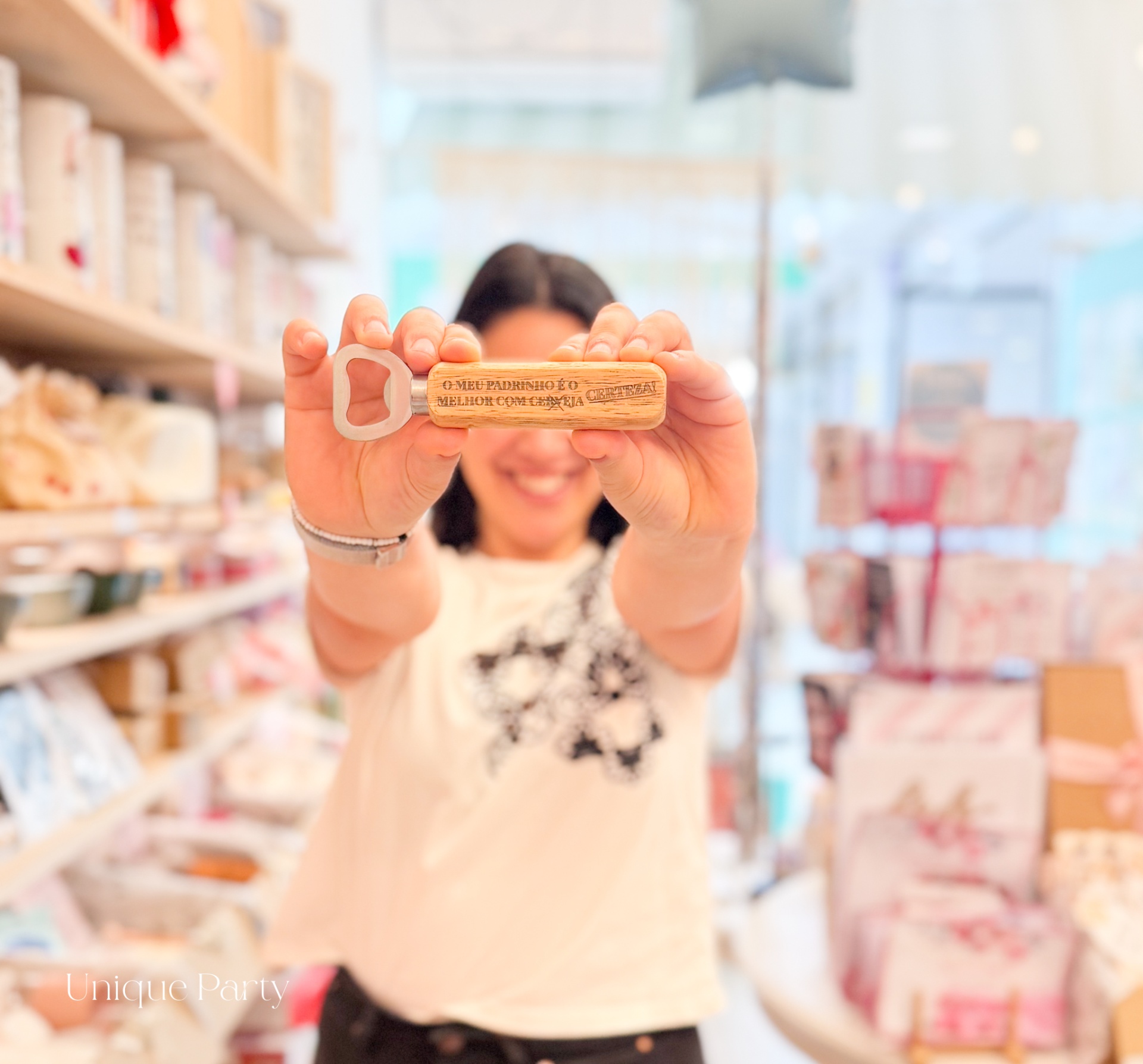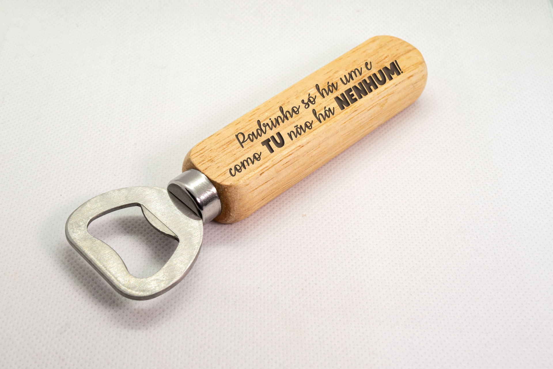 Surpreende o melhor padrinho com este abre caricas em madeira com mensagem gravada, a combinação perfeita entre utilidade e sentimento 🍻✨