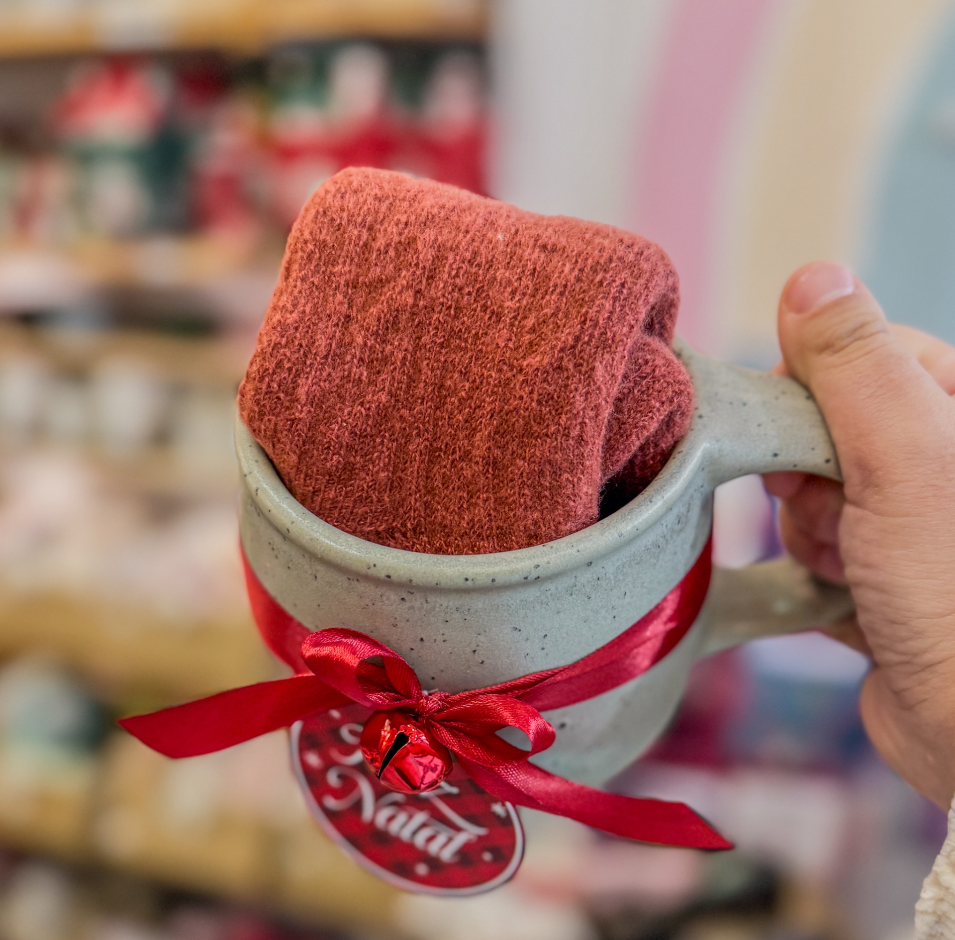 BIG MUG de Cerâmica com Meias Térmicas de Inverno – Conjunto Aconchegante