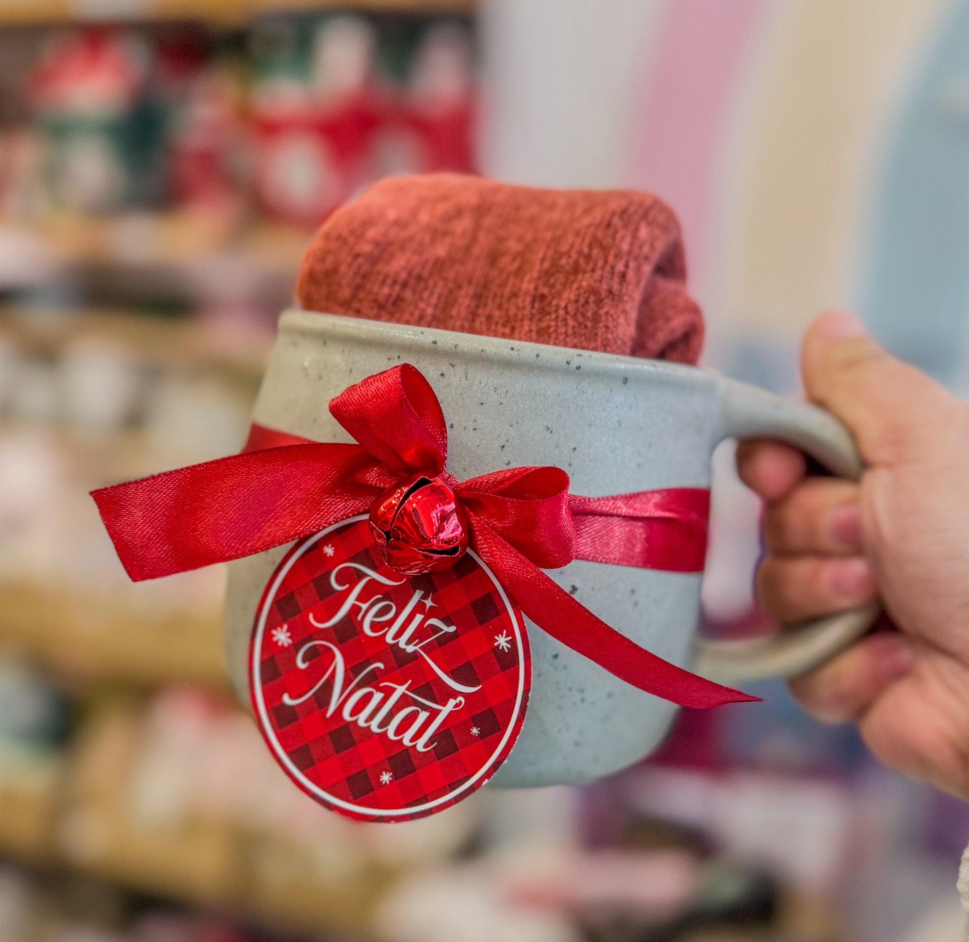 📦 Inclui: • 1 Caneca BIG MUG de cerâmica regional tosca • 1 Par de meias térmicas de inverno (modelo aleatório)