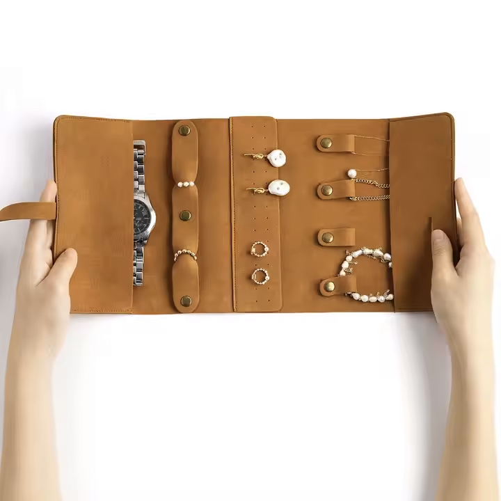 Home CRIA A TUA CAIXA DE OFERTA (GIFT BOXES) Bolsa Porta-Jóias de Couro | Organizador Compacto para Viagem Bolsa Porta-Jóias de Couro | Organizador Compacto para Viagem 10,99 € Desconto de %. IVA incluído. Comprar Contactar Adicionar à wishlist Bolsa porta-jóias elegante e compacta feita em couro, perfeita para transportar colares, anéis e brincos em viagens. Com múltiplas seções organizadoras e fecho seguro, mantém as suas peças protegidas e organizadas com estilo e praticidade onde quer que vá. Material: couroTamanho: 12 x 6,5cm e aberto 19 x 12cm Tags coffretbelezaprendagiftgift boxboxcaixa de ofertaabaixo 20€descansoviagemportátilbrincospulseirasanéiscolares Características Partilhar