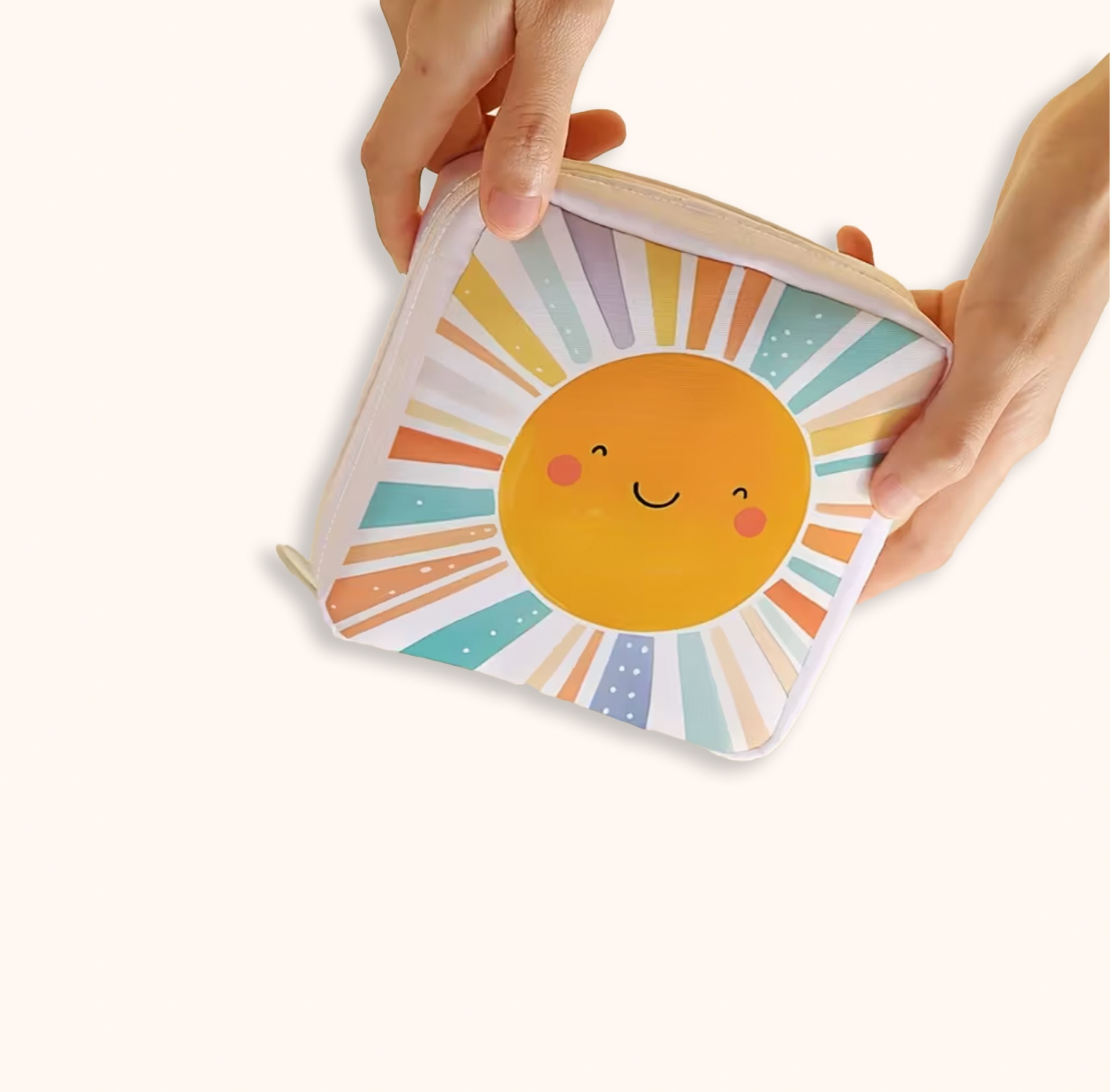 Leva alegria e cor às tuas viagens com esta bolsa organizadora de viagem com desenho de sol e riscas arco-íris 🌈
