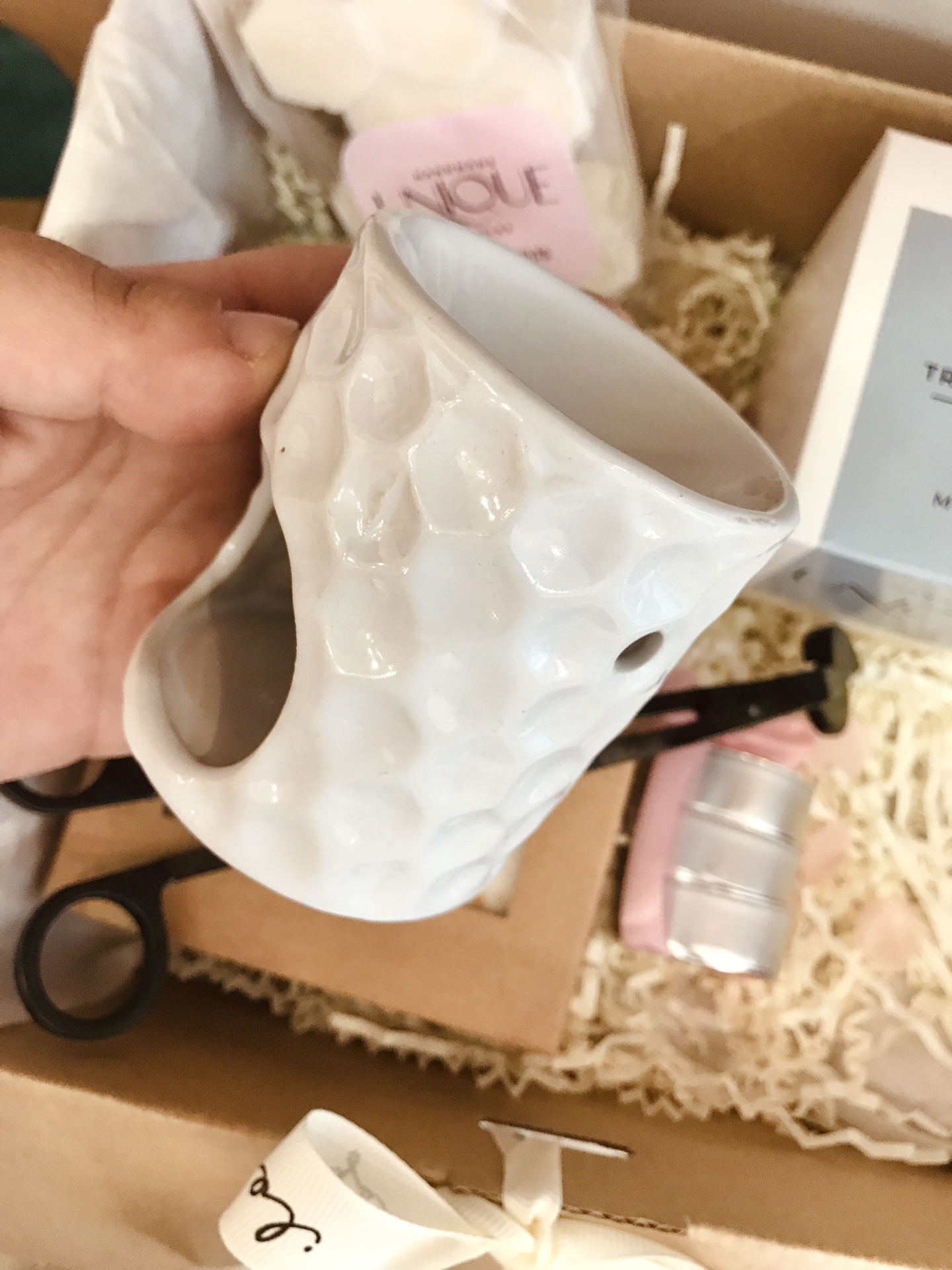 Descrição: Queimador de óleos e ceras Medida: 6,5 x 6,5 x 7,5cm Material: Cerâmica