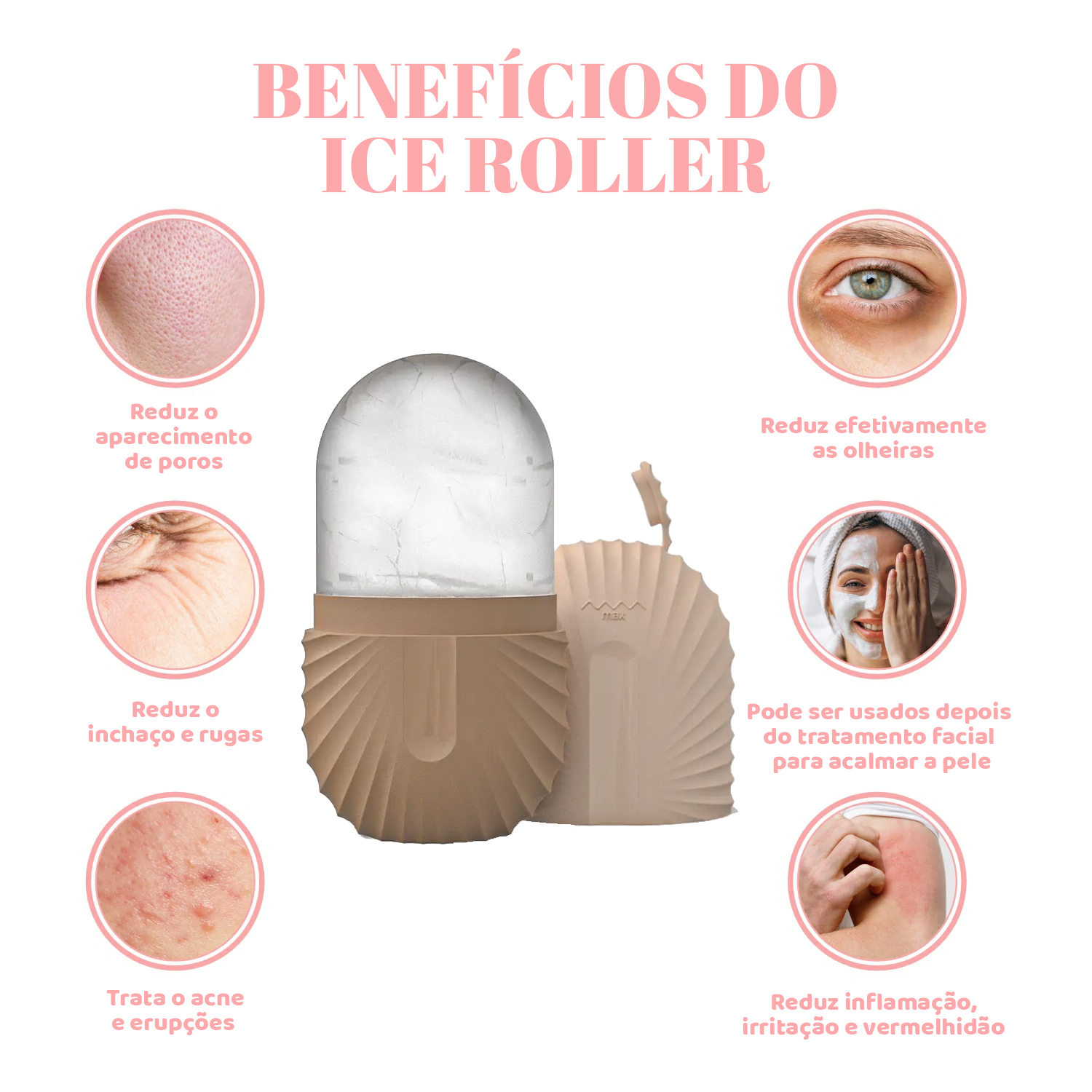 MELHORAR A PELE: o rolo de gelo facial pode eliminar o inchaço sob os olhos, clarear a tez, apertar e encolher os poros, estimular a circulação sanguínea e reduzir a inflamação. Tem múltiplas funções, como beleza, limpeza e circulação sanguínea