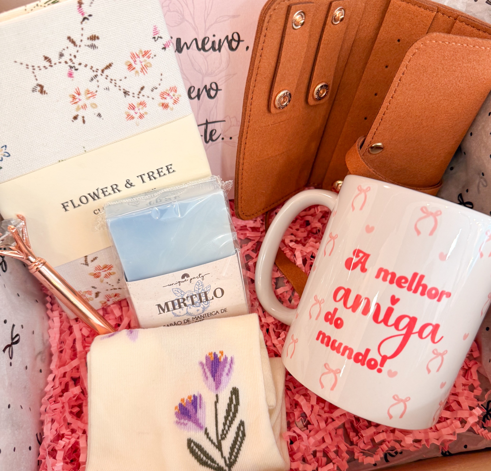 Home GIFT BOXES - PRONTAS A OFERECER Box Best Friend Box Best Friend MENSAGEM 55,50 € Desconto de %. IVA incluído. Comprar Contactar Adicionar à wishlist Surpreende a tua melhor amiga com a Gift Box Best Friends! Inclui caneca “Melhor Amiga”, notebook de tecido, sabonete artesanal, caneta com diamante e muito mais. Um presente completo, bonito e memorável para celebrar a amizade. Inclui: Caneca de cerâmica Melhor Amiga Notebook capa de tecido Sabonete Artesanal Porta-Jóias couro falso Par de meias fofinhas Caneta de tinta preta com imitação de diamante Cartão para escrever uma mensagem (caso queiras que escrevamos a mensagem, diz-nos qual será a mesma, no campo indicado) CARACTERÍSTICAS CANETA: Cor tinta pretaMedidas Recarga: 8,2cmMedidas Caneta: 2 x 13,8cm Tags coffretkit auto cuidadoice rollerbelezaprendagiftdia dos namoradoscuidado pelecuidado rostosaúdeagendaplaneamentodoces Características Partilhar