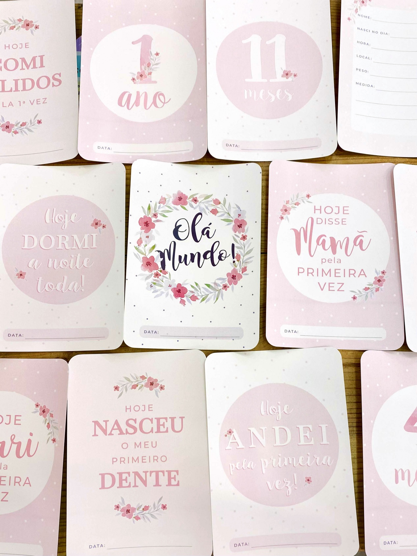 Coloque o cartão ao lado do seu bebé, coloque a data e viva o momento… o primeiro dente, quando dormiu a noite toda, quando disse mamã ou papá pela primeira vez, o primeiro aniversário.