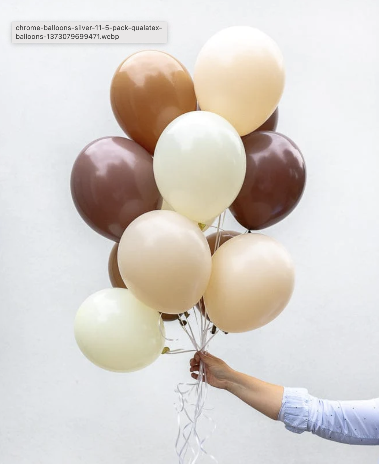 Pack com 12 balões de látex (27/30cm) lisos e cromados, perfeito para festas sofisticadas, aniversários ou eventos com paleta neutra.