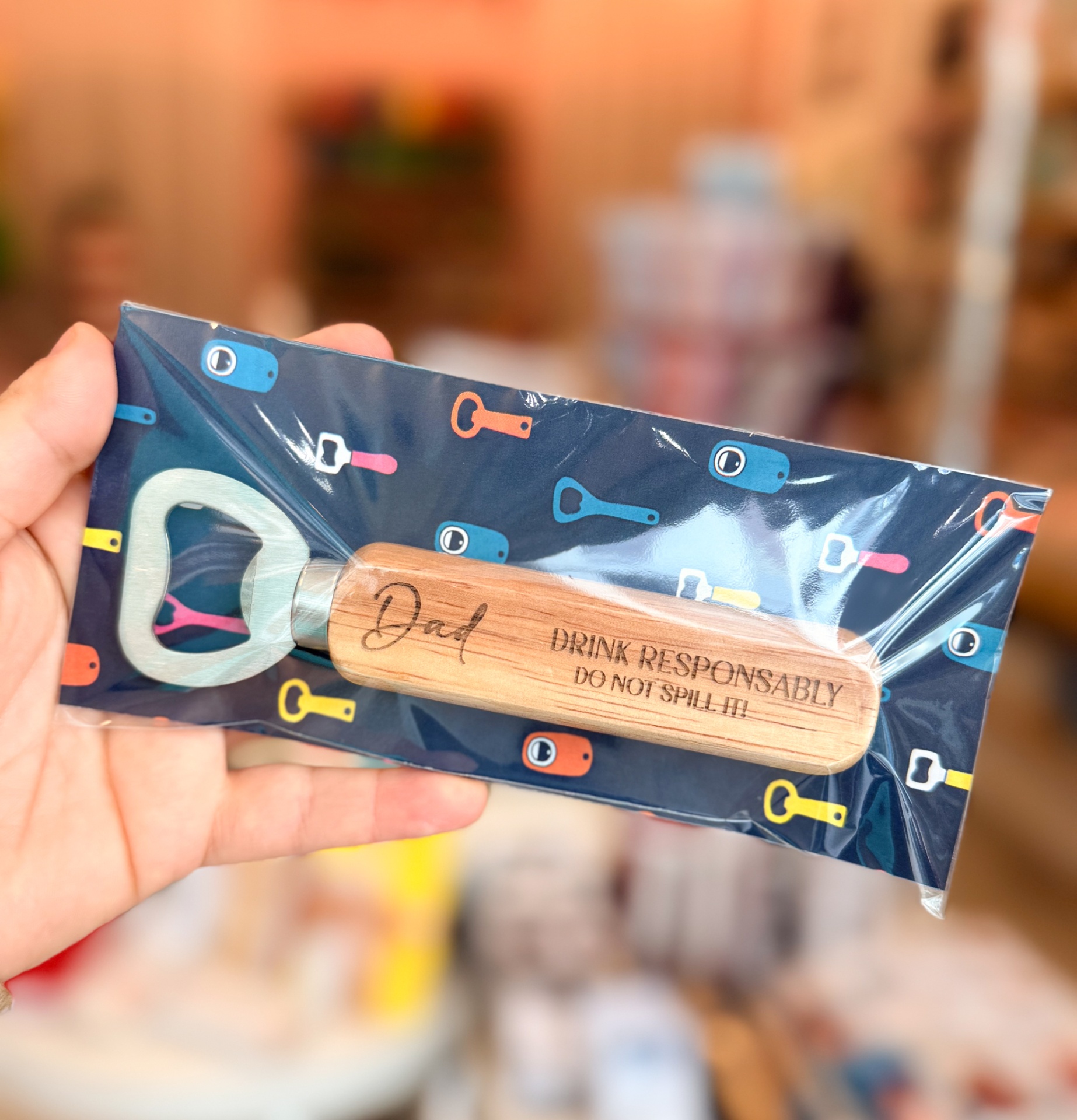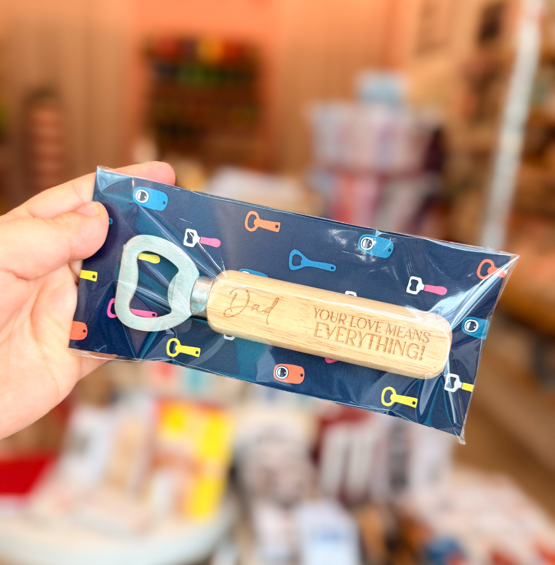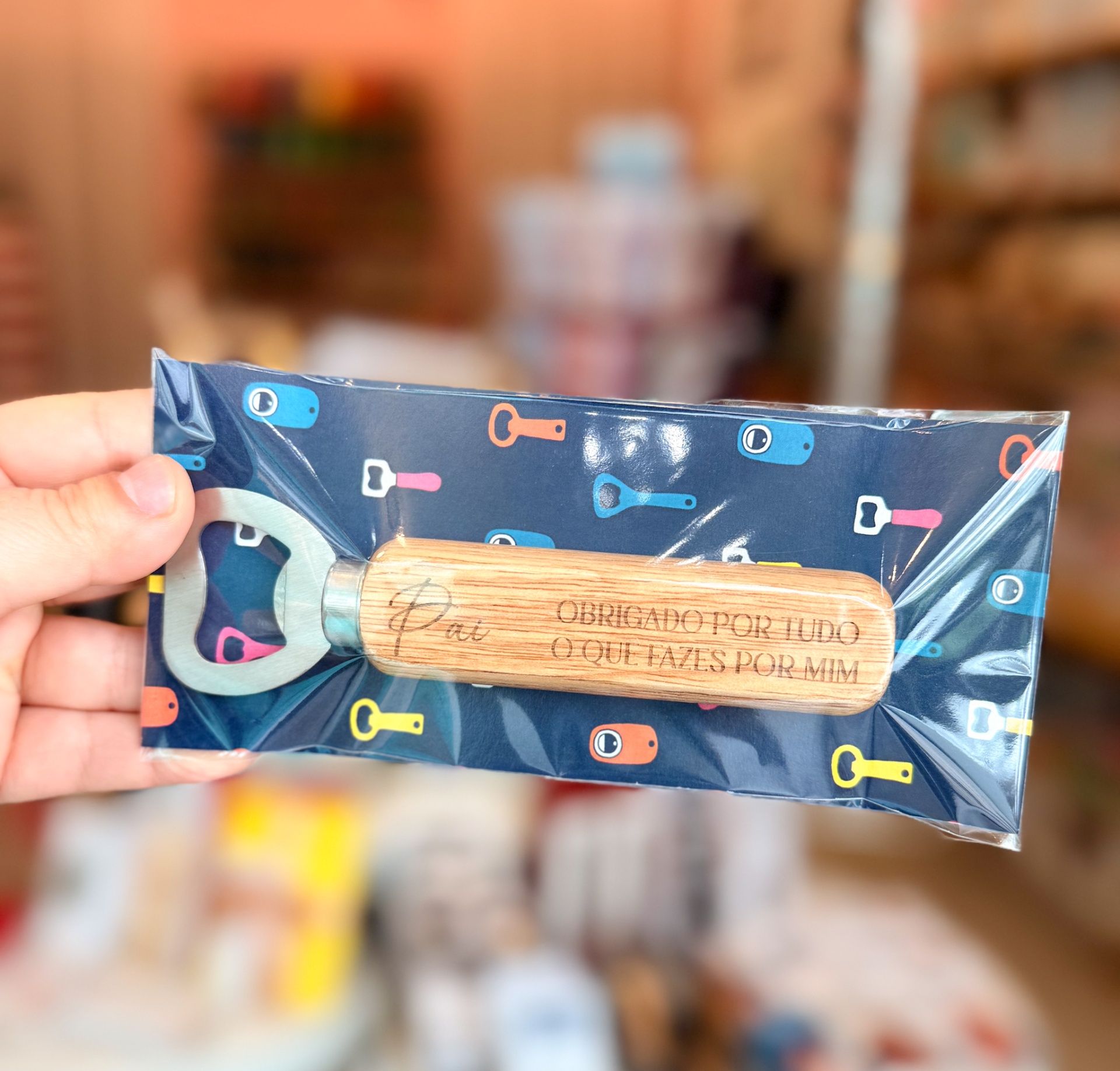 Presente original para o Dia do Pai: chocolate de leite e abre-caricas em madeira gravado.
