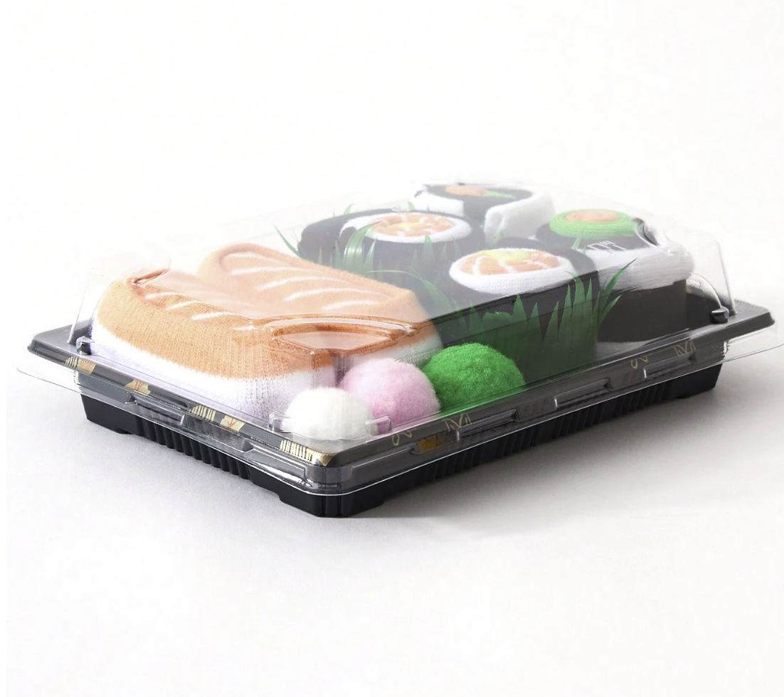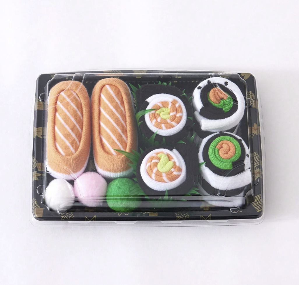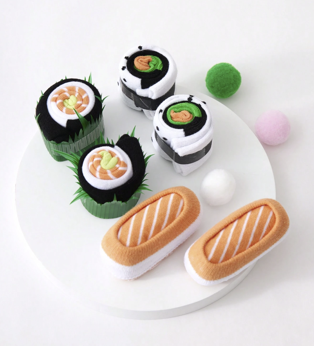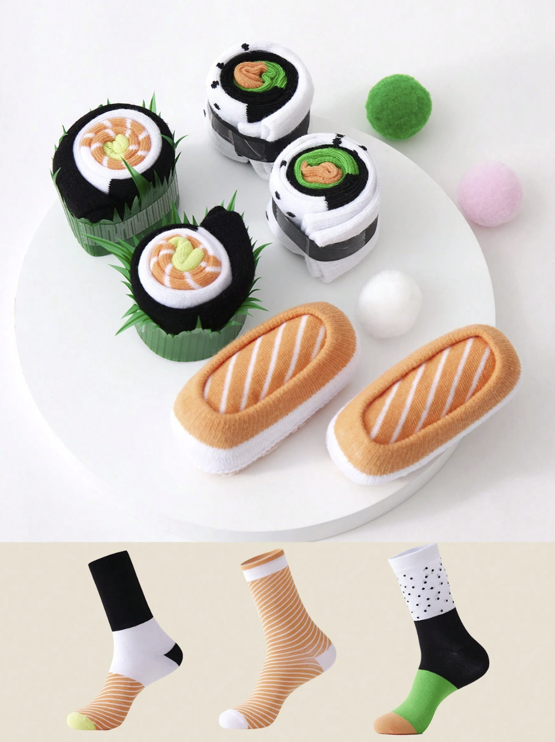 Dá um toque divertido e original ao teu look com este conjunto de 3 pares de meias com tema de sushi 🍣
