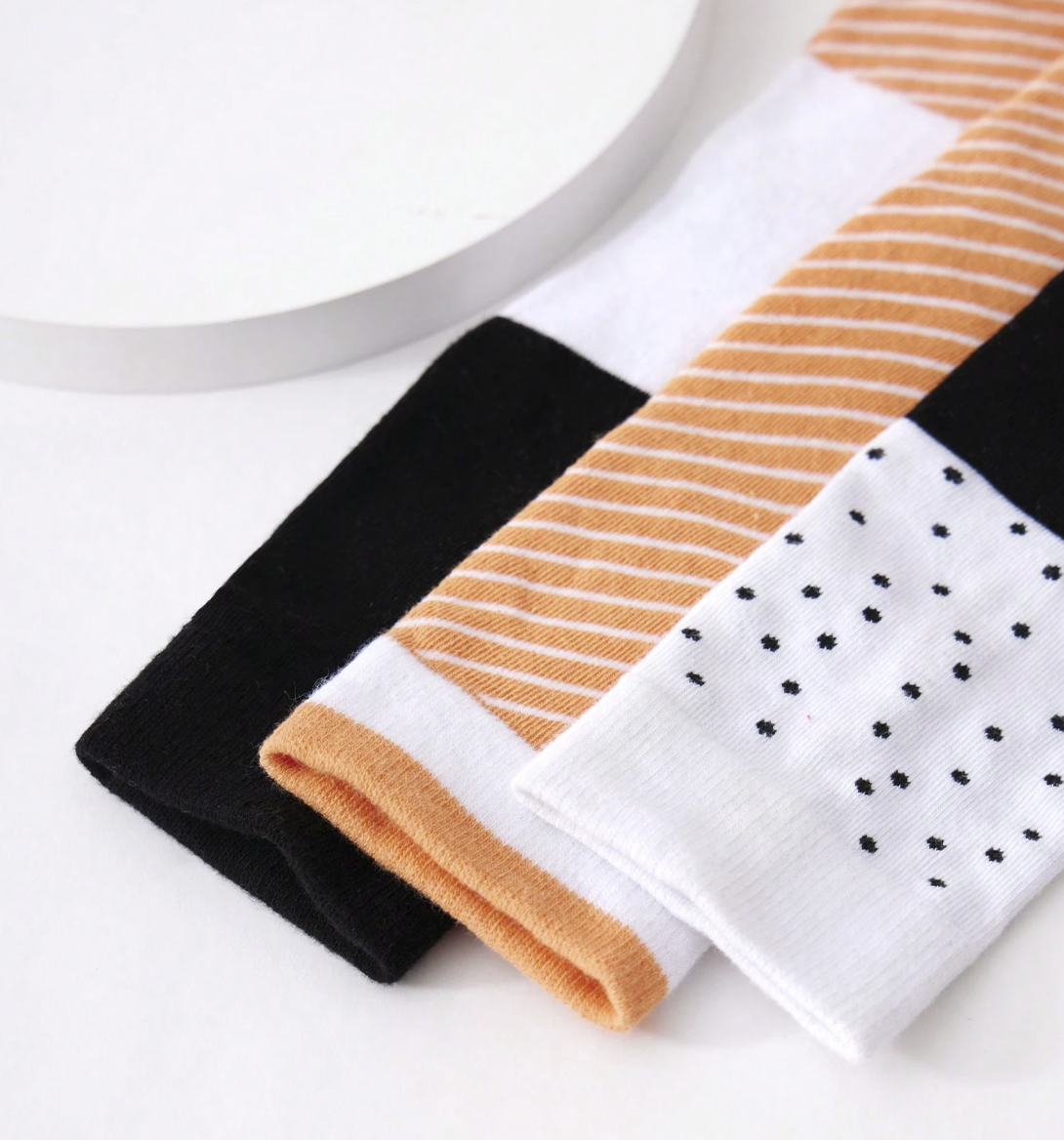 Fabricadas em 95% poliéster e 5% elastano (spandex), estas meias são respiráveis, macias e elásticas, garantindo conforto durante todo o dia.