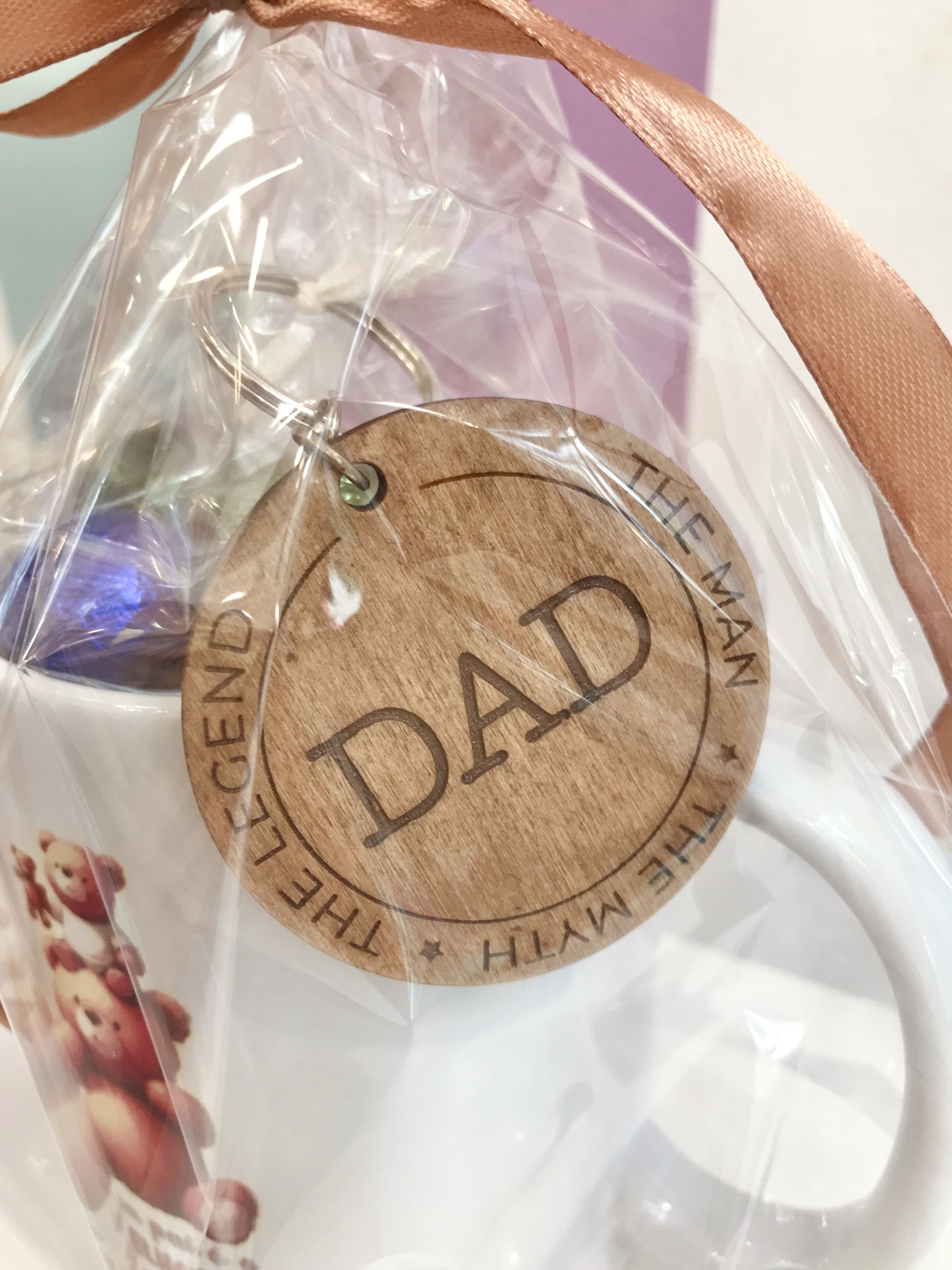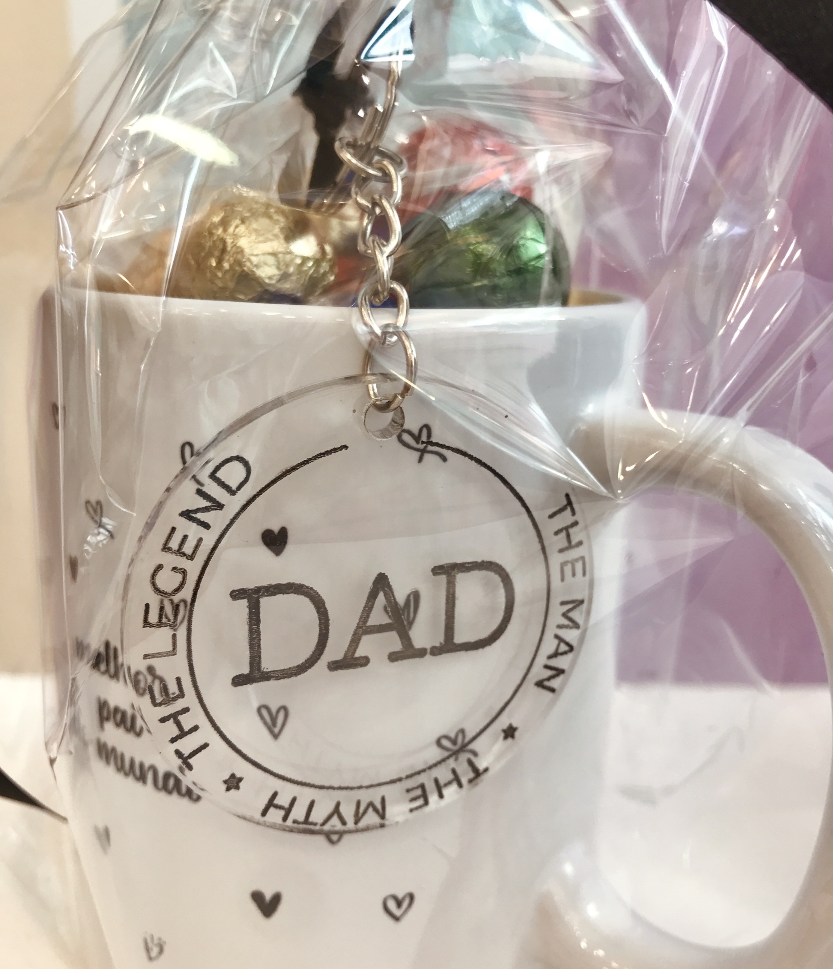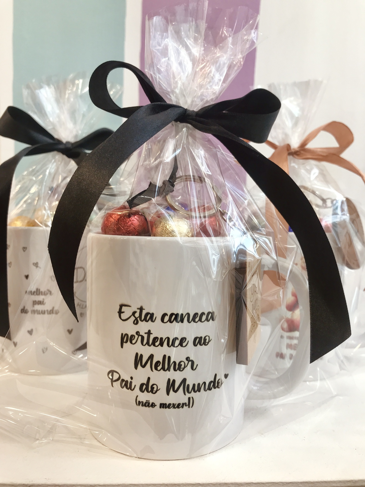 Celebra o melhor pai com este conjunto especial: caneca de cerâmica, deliciosos bombons de chocolate de leite e porta-chaves em acrílico. Um mimo cheio de carinho!