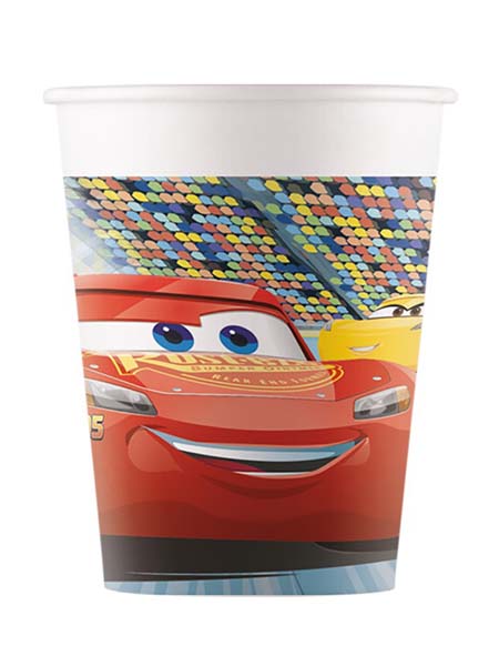 Completa a mesa da festa com estes copos de papel do tema Cars, com o icónico Faísca McQueen, ideais para aniversários cheios de velocidade, cor e diversão 🚗⚡