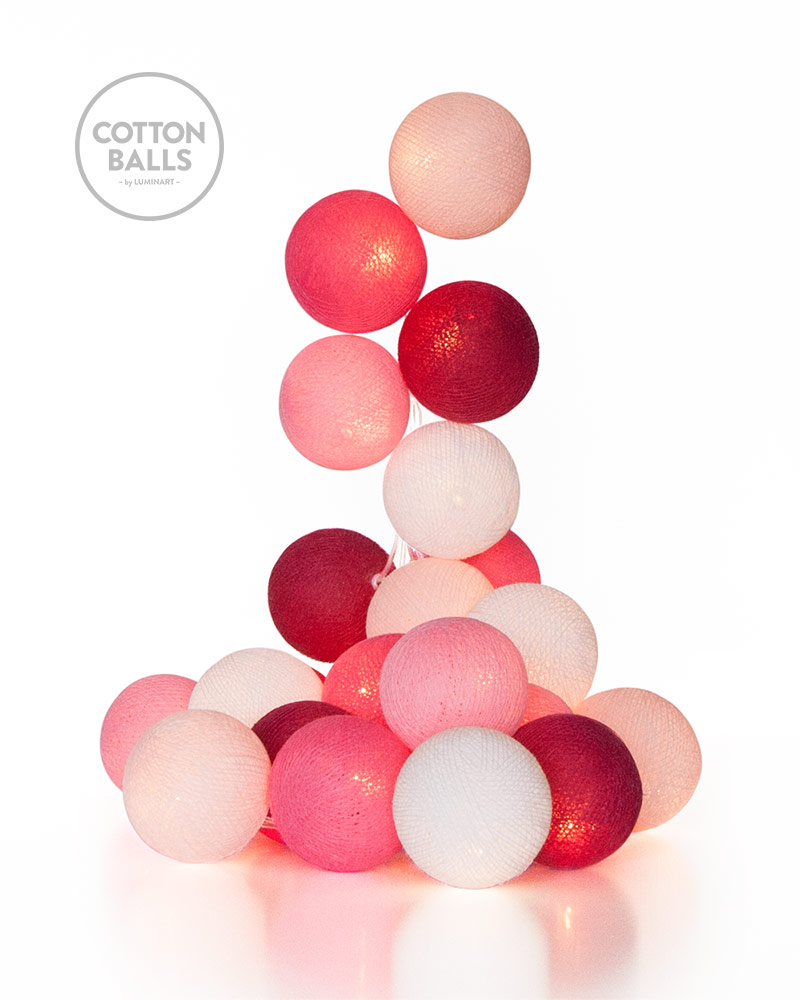 Receberá uma grinalda completa, composta por bolas de algodão (Cotton Balls) e fio de luzes preparada para montagem. Graças a isto pode aplicar as bolas em qualquer ordem no fio de acordo com o seu gosto e assim criar uma composição exclusiva. Cada grinalda inclui instruções de montagem.