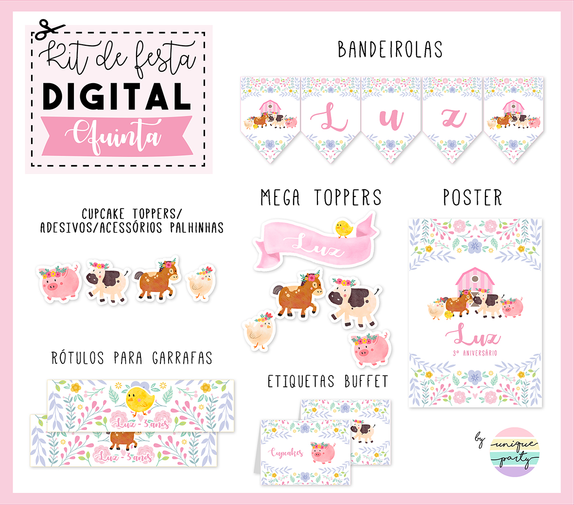 Com o KIT DIGITAL conseguirá embelezar a sua festa a um preço muito especial! Faz o download, imprime, recorta e monta a tua própria festa!