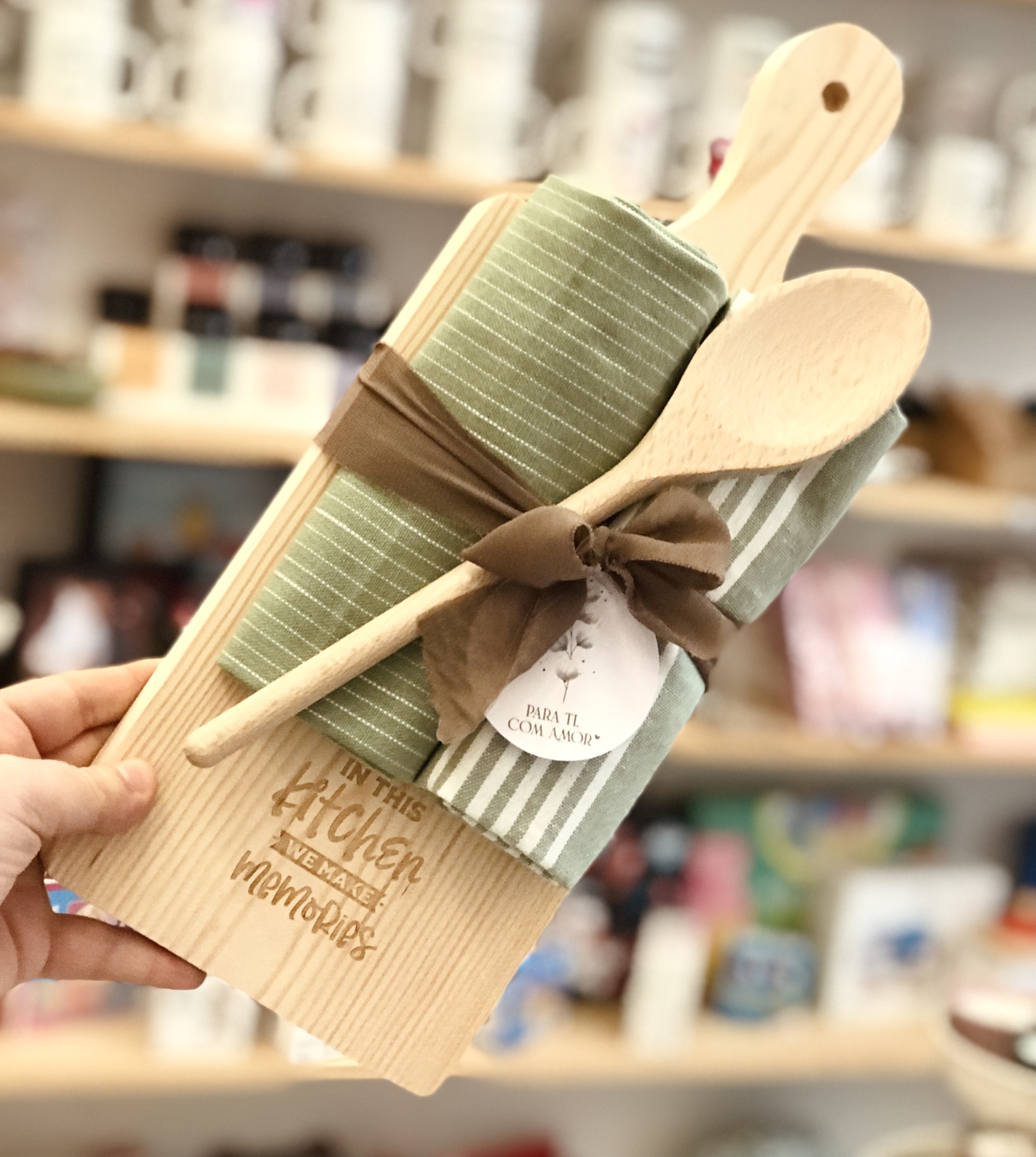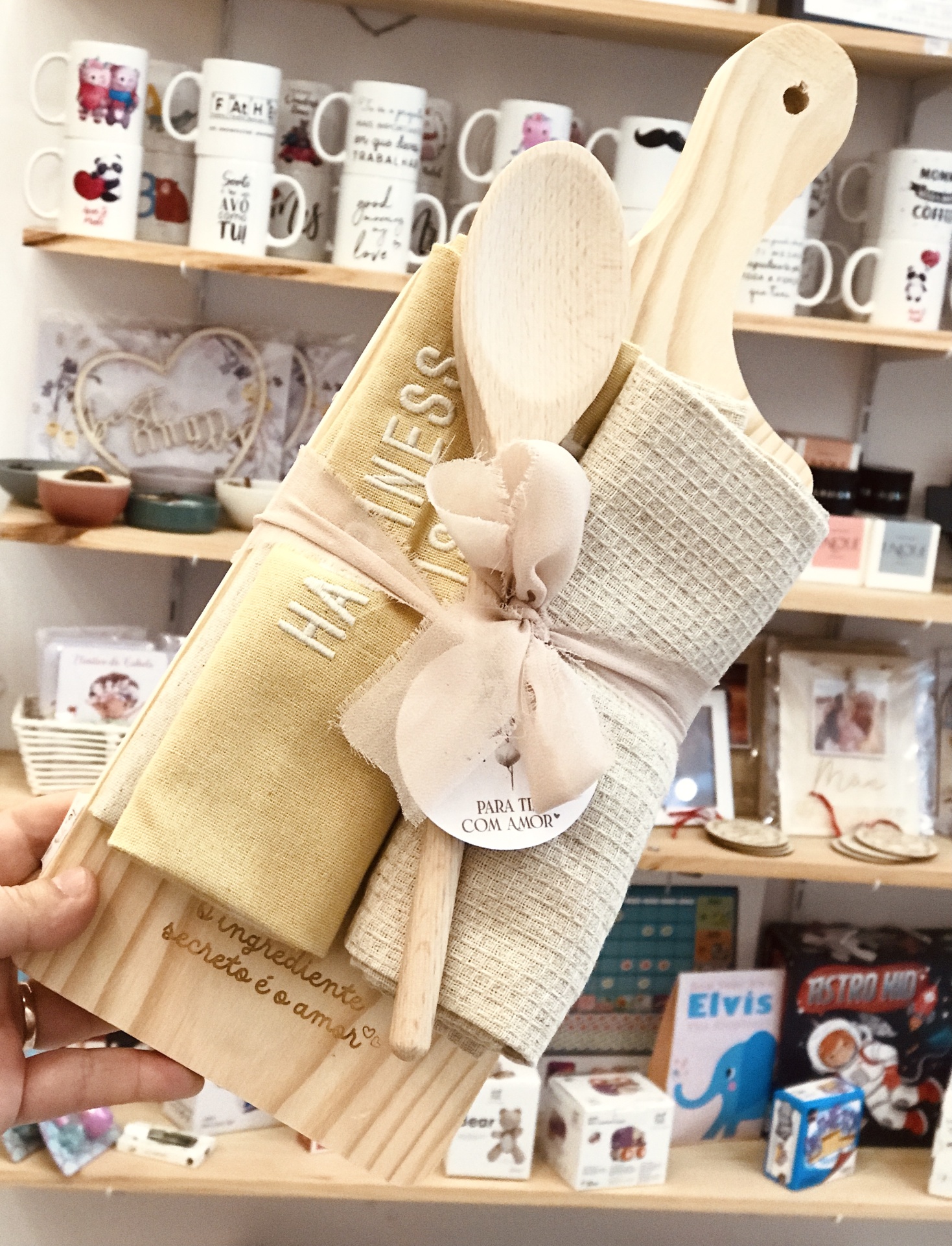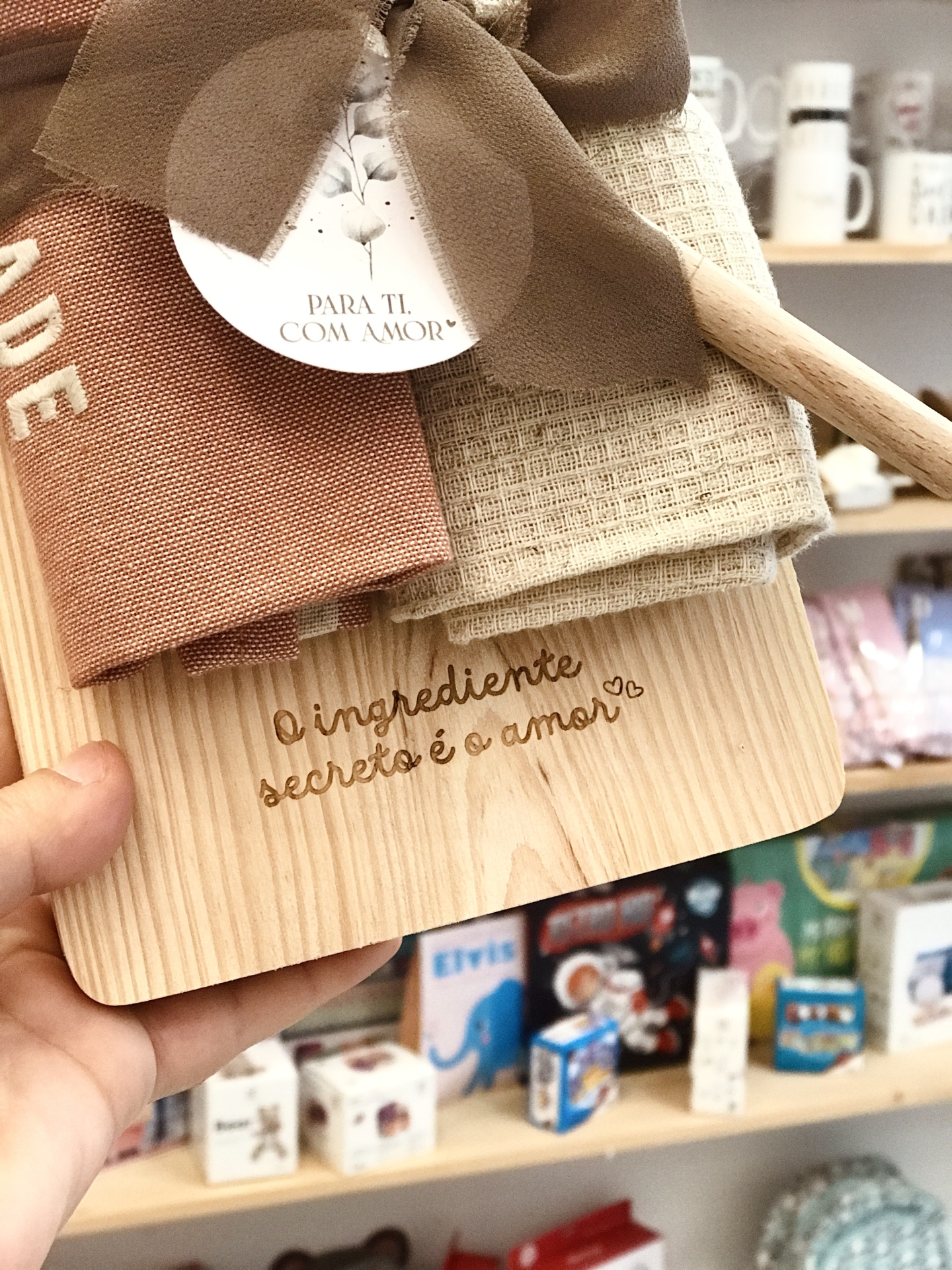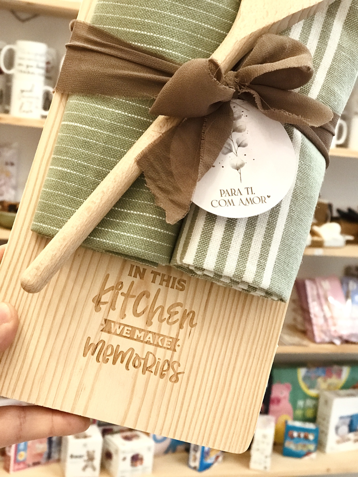 Home GIFT BOXES - PRONTAS A OFERECER Kit Tábua de Madeira - Conjunto Rústico de Cozinha com Frase Gravada Kit Tábua de Madeira - Conjunto Rústico de Cozinha com Frase Gravada MENSAGEM O INGREDIENTE SECRETO IN THIS KITCHEN 16,99 € Desconto de %. IVA incluído. Comprar Contactar Adicionar à wishlist Tábua de madeira com frases inspiradoras, 2 panos de tecido e colher de pau. Ideal para decorar, cozinhar com amor ou oferecer como presente especial. Conjunto de tábua de queijos de madeira com a inscrição "In this kitchen we make memories" ou " O ingrediente secreto é o amor" 35cm + 2 panos de tecido (cores/modelo enviados aleatóriamente) + colher de pau Partilhar
