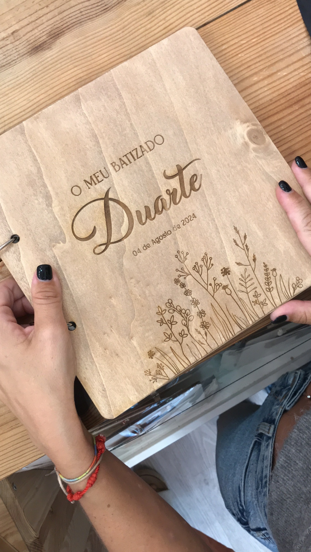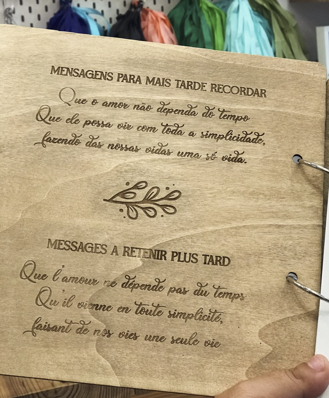 Home CASAMENTO Livro de Assinaturas em Madeira – Memórias que Duram para Sempre Livro de Assinaturas em Madeira – Memórias que Duram para Sempre INFORMAÇÃO A PERSONALIZAR 65,00 € Desconto de %. IVA incluído. Comprar Contactar Adicionar à wishlist Regista memórias inesquecíveis com o nosso livro de assinaturas com capa de madeira gravada e 30 folhas interiores. Um detalhe elegante e personalizado para casamentos, batizados, aniversários e outras celebrações. Com argolas metálicas que permitem abrir e folhear com facilidade, este livro torna-se uma recordação eterna, cheia de mensagens especiais. Tags giftcasamentolivro de assinaturaslivro de honra Características Partilhar