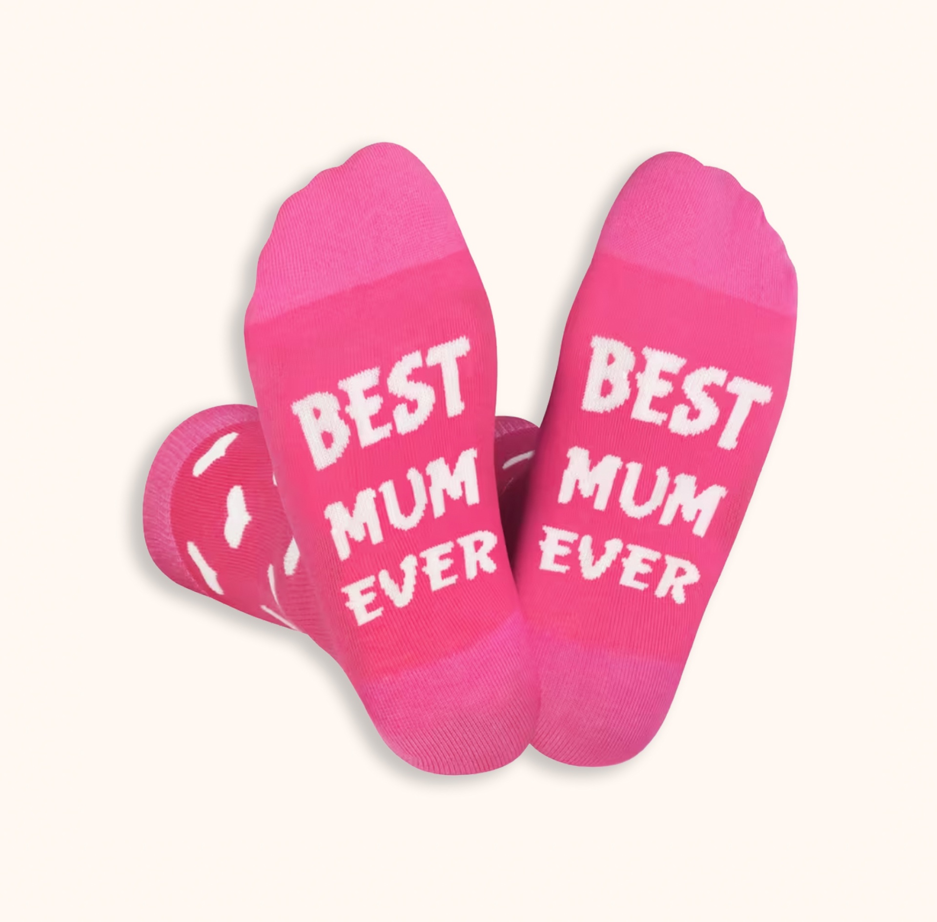 Surpreende a melhor mãe do mundo com estas meias rosa com corações em algodão com a mensagem "Best Mum Ever"!