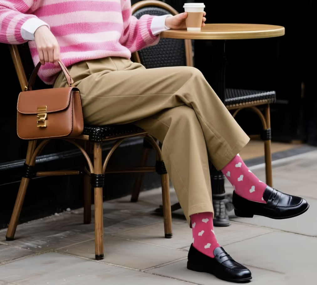 De cano médio e solas impressas, combinam conforto, estilo e um toque de humor (1 par de meias).