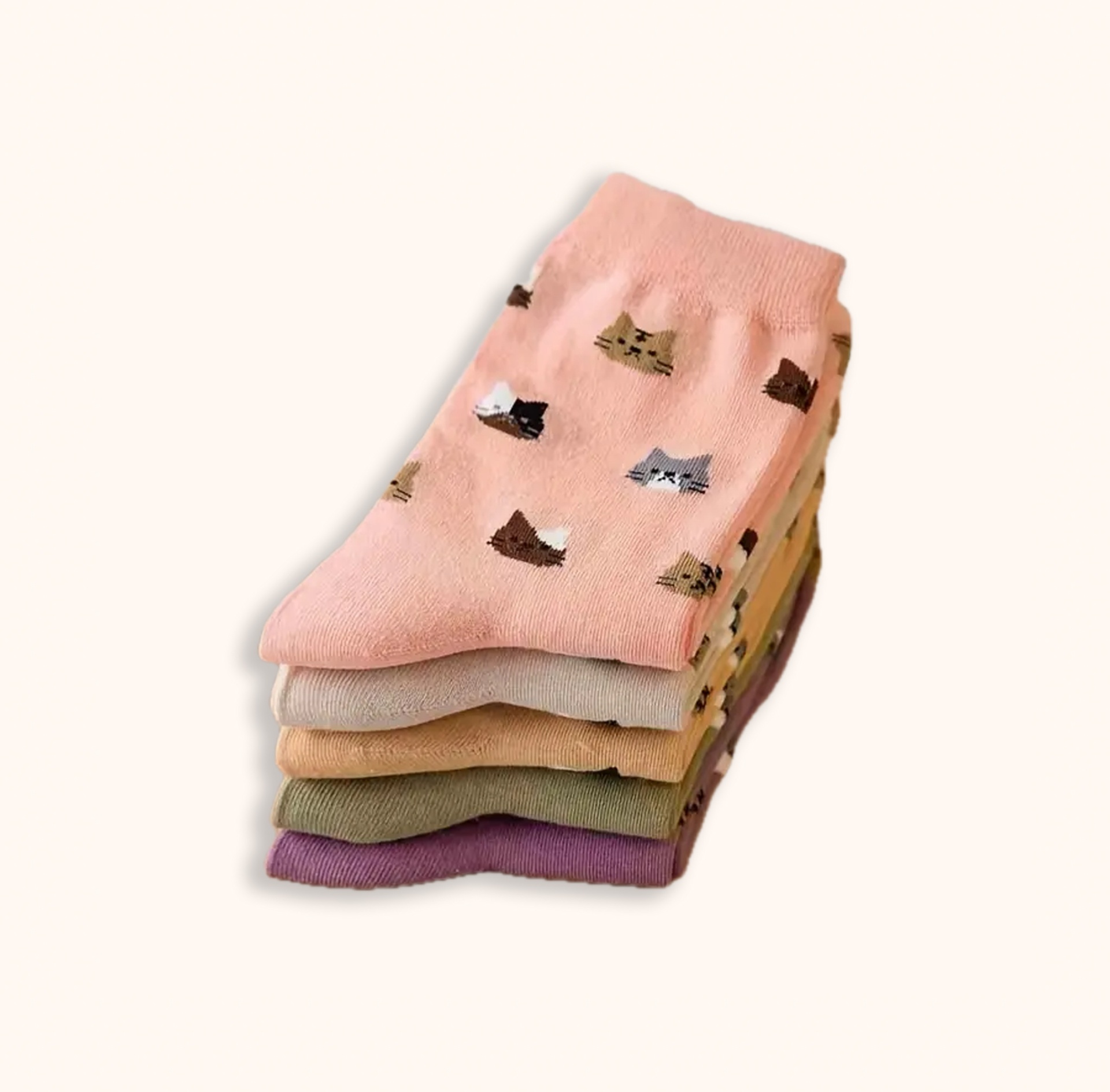 Estas meias femininas destacam-se pelo padrão de gatos super fofos, que dão um toque divertido e original ao teu dia a dia (1 par).