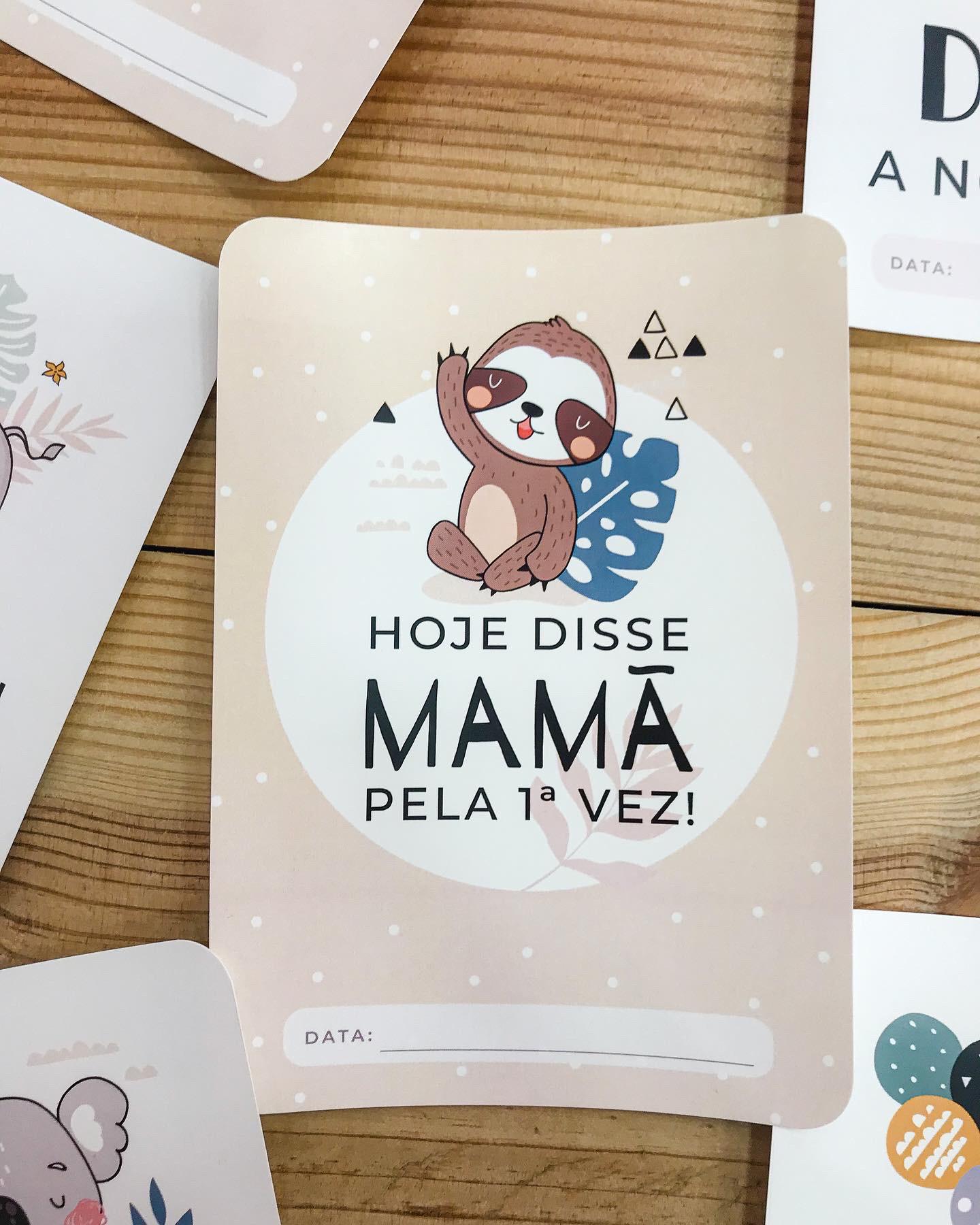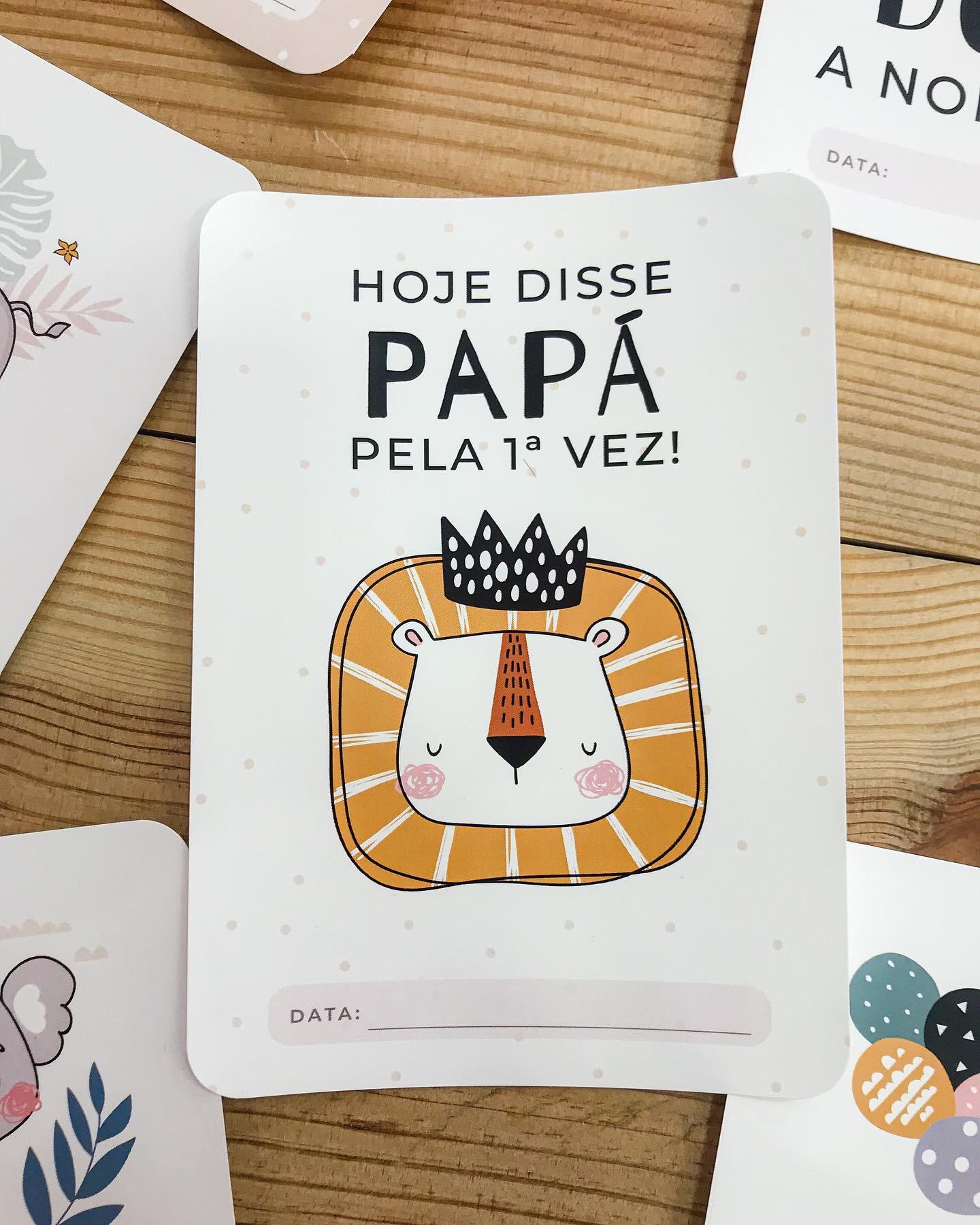 Coloque o cartão ao lado do seu bebé, coloque a data e viva o momento… o primeiro dente, quando dormiu a noite toda, quando disse mamã ou papá pela primeira vez, o primeiro aniversário.