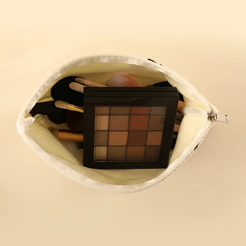 Espaçosa, resistente e suave ao toque, é perfeita para transportar maquilhagem, produtos de higiene ou pequenos acessórios tanto em viagens como no dia a dia.