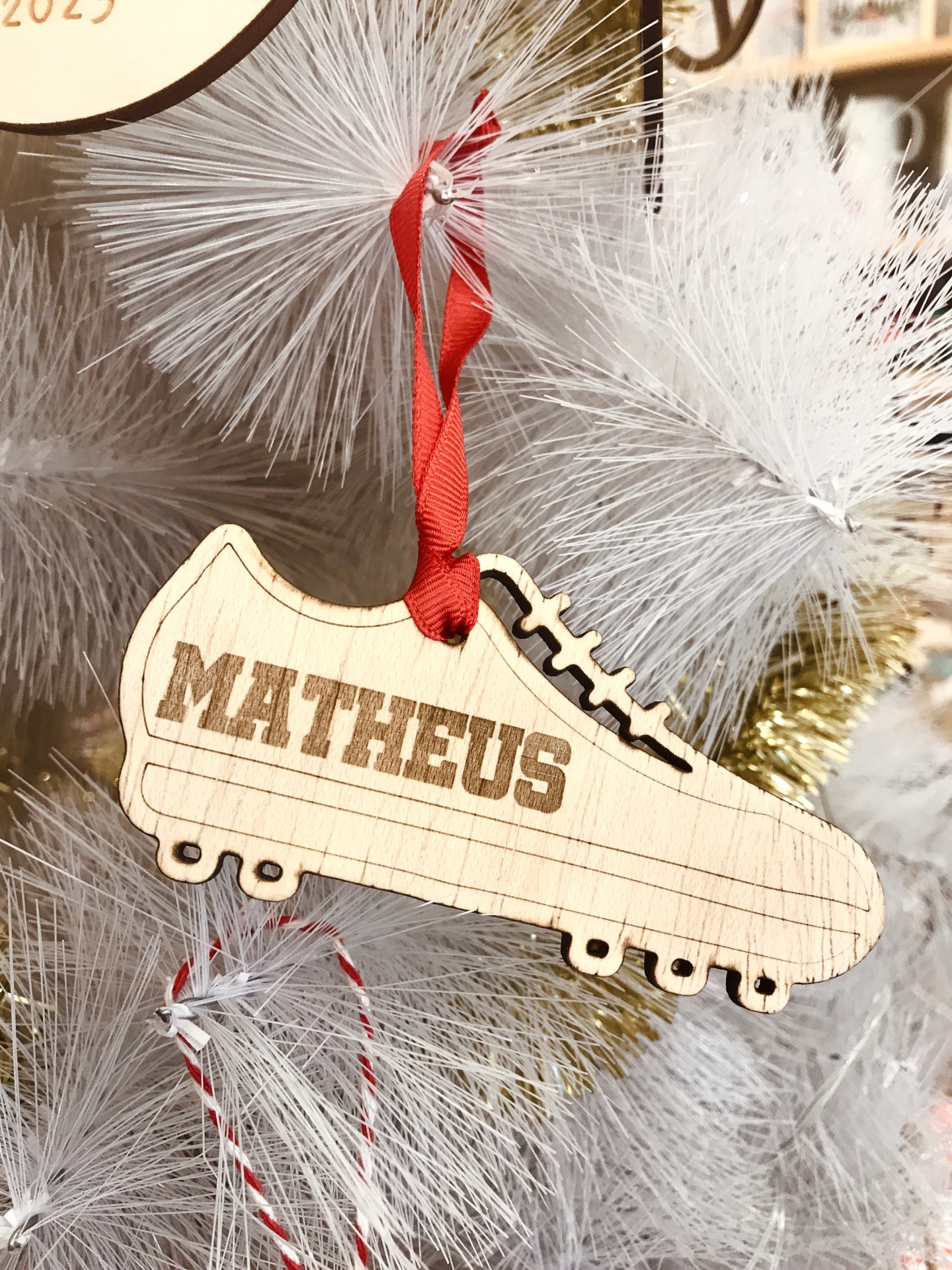 Ornamento de Madeira em Forma de Chuteira – Personalizado com Nome