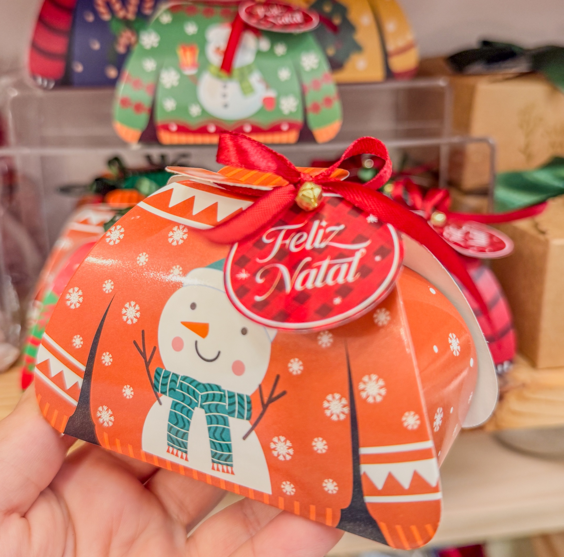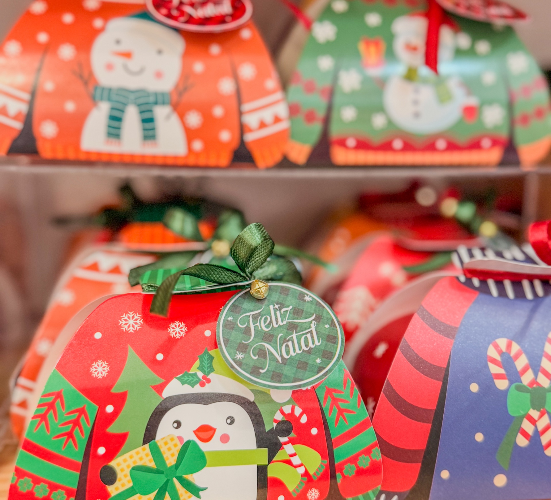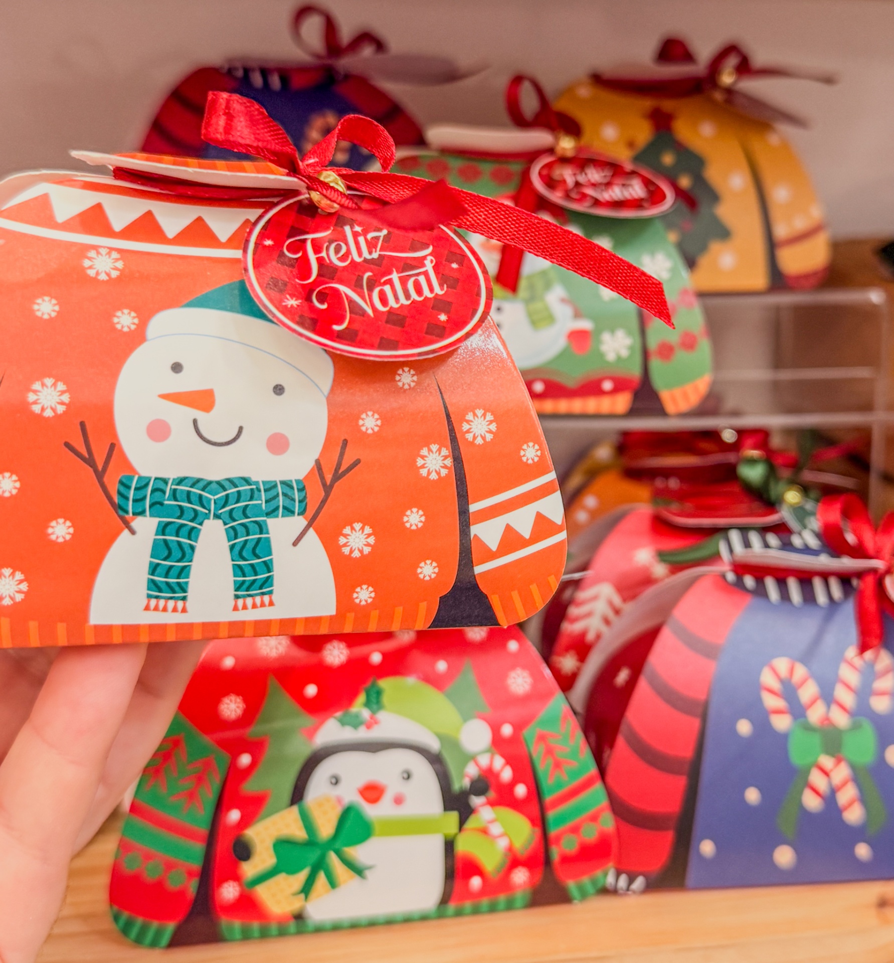 Com um design super fofo e temático, esta mini gift box é perfeita para oferecer, decorar ou surpreender alguém especial nesta época mágica. Cada unidade é enviada em modelo aleatório, garantindo sempre um toque único e divertido.