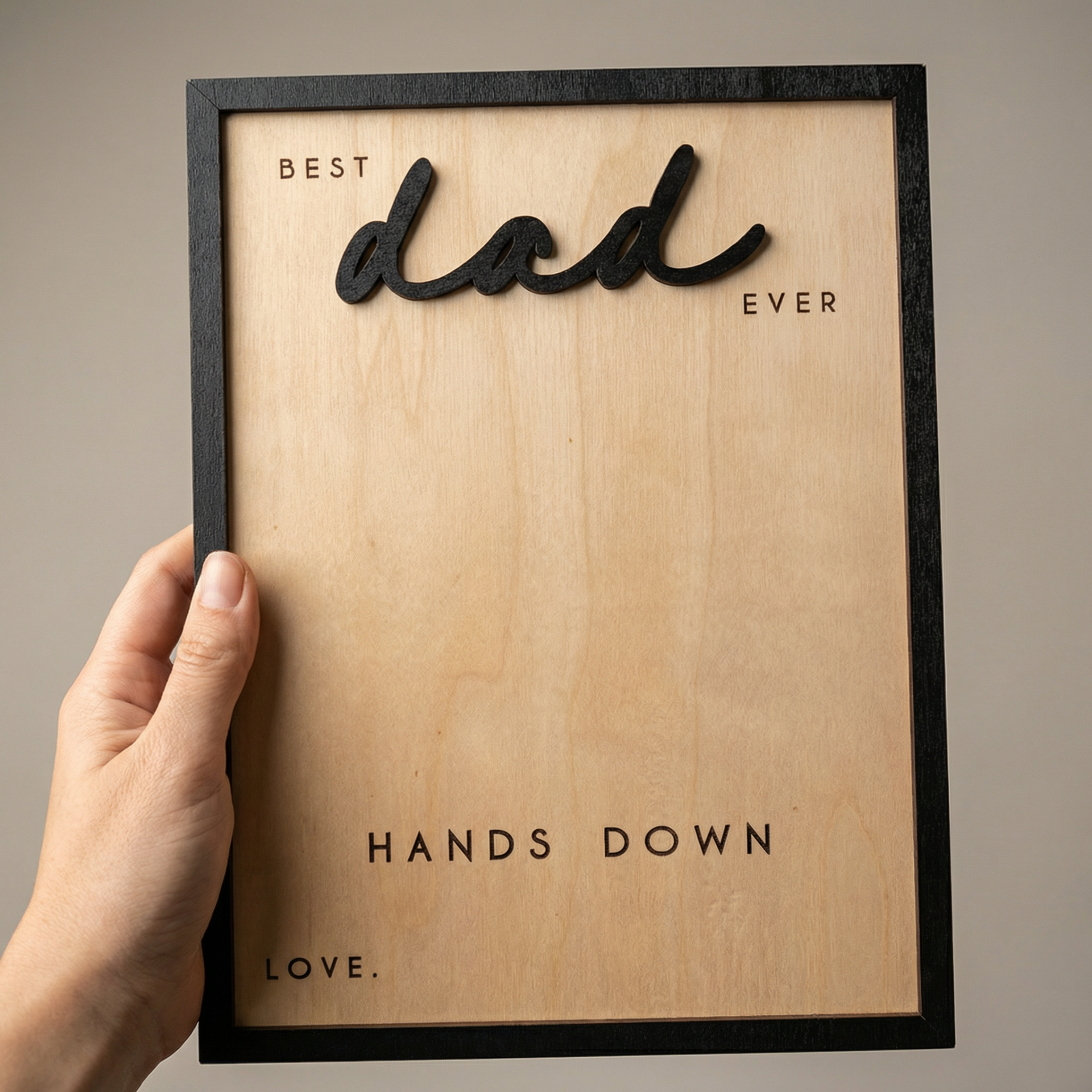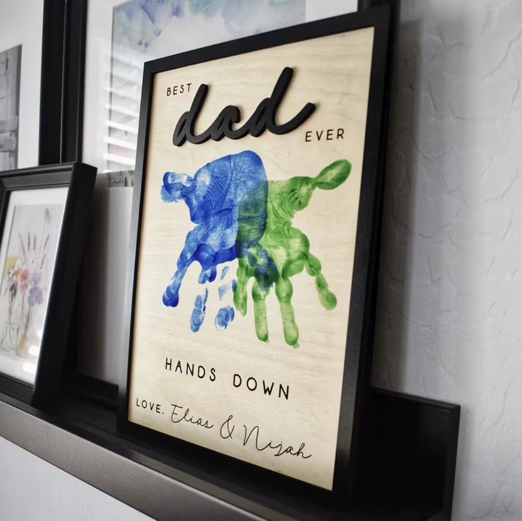 📦 Características: • Quadro em madeira • Altura aproximada: 26 cm • Espaço para pintura das mãos das crianças • Ideal para atividades criativas e presente do Dia do Pai
