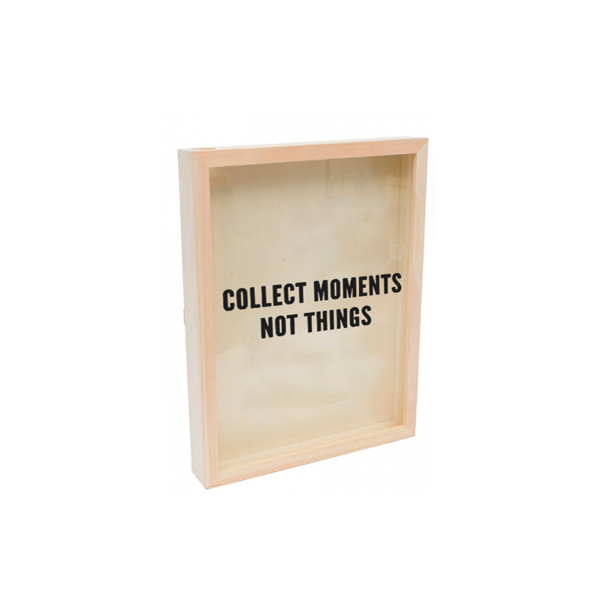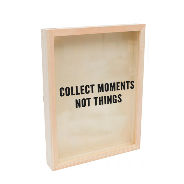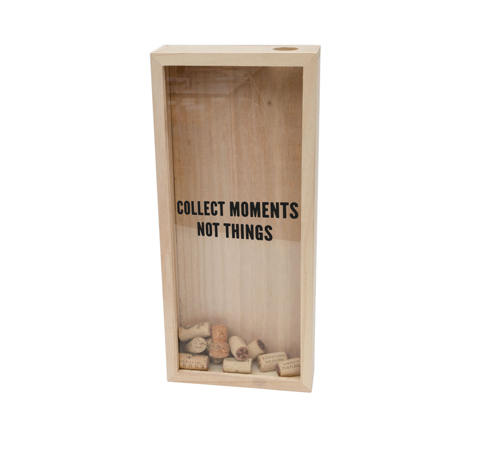 Celebre os melhores momentos com este Quadro de Rolhas em madeira, com a mensagem inspiradora “Collect Moments Not Things” gravada no vidro 🍷✨