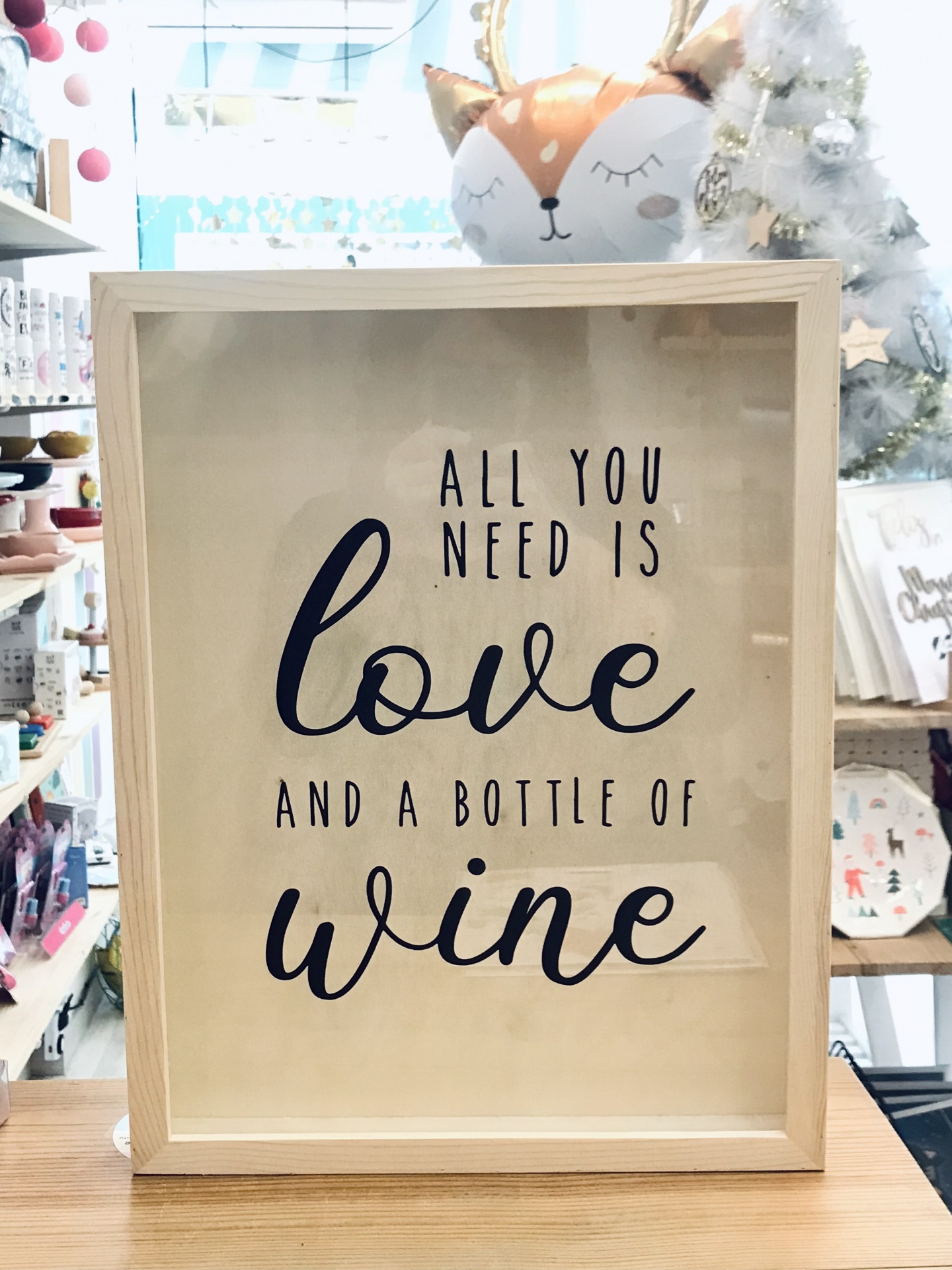 Celebra o amor e os bons brindes com este Quadro de Rolhas em madeira, gravado com a frase romântica e divertida “All you need is love and a bottle of wine” 🍷❤️