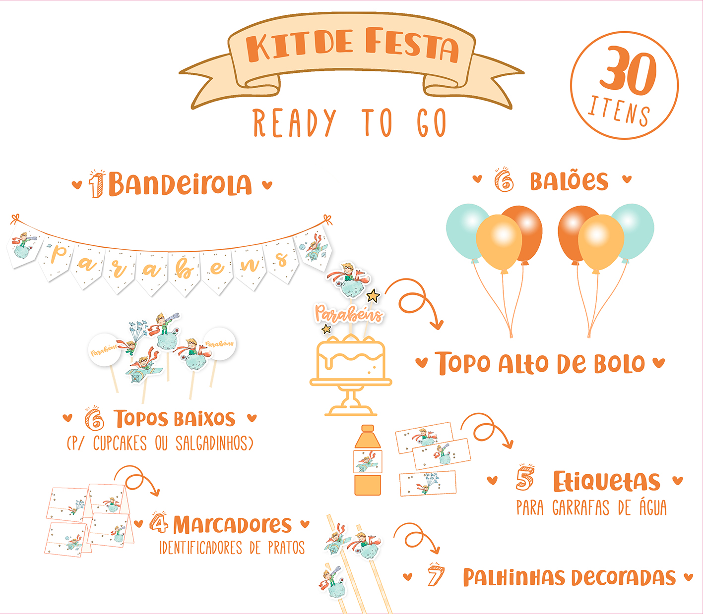 Home PRINCIPEZINHO Kit de Festa READY TO GO - PRINCIPEZINHO Kit de Festa READY TO GO - PRINCIPEZINHO 26,99 € Desconto de %. IVA incluído. Comprar Contactar Adicionar à wishlist Com o KIT READY TO GO conseguirá embelezar a sua festa a um preço muito especial! O Kit tem praticamente o necessário para decorar a festinha do teu filhote, basta juntar uns docinhos e muita alegria! O que o kit inclui? - 1 Bandeirola Parabéns - 6 balões de latex - Topo de bolo alto - para bolo principal - 6 topos de bolo - para cupcakes e salgadinhos - 5 etiquetas para garrafinhas - 4 marcadores de comidas - 7 palhinhas decoradas NOTA: KIT NÃO PERSONALIZÁVEL Partilhar