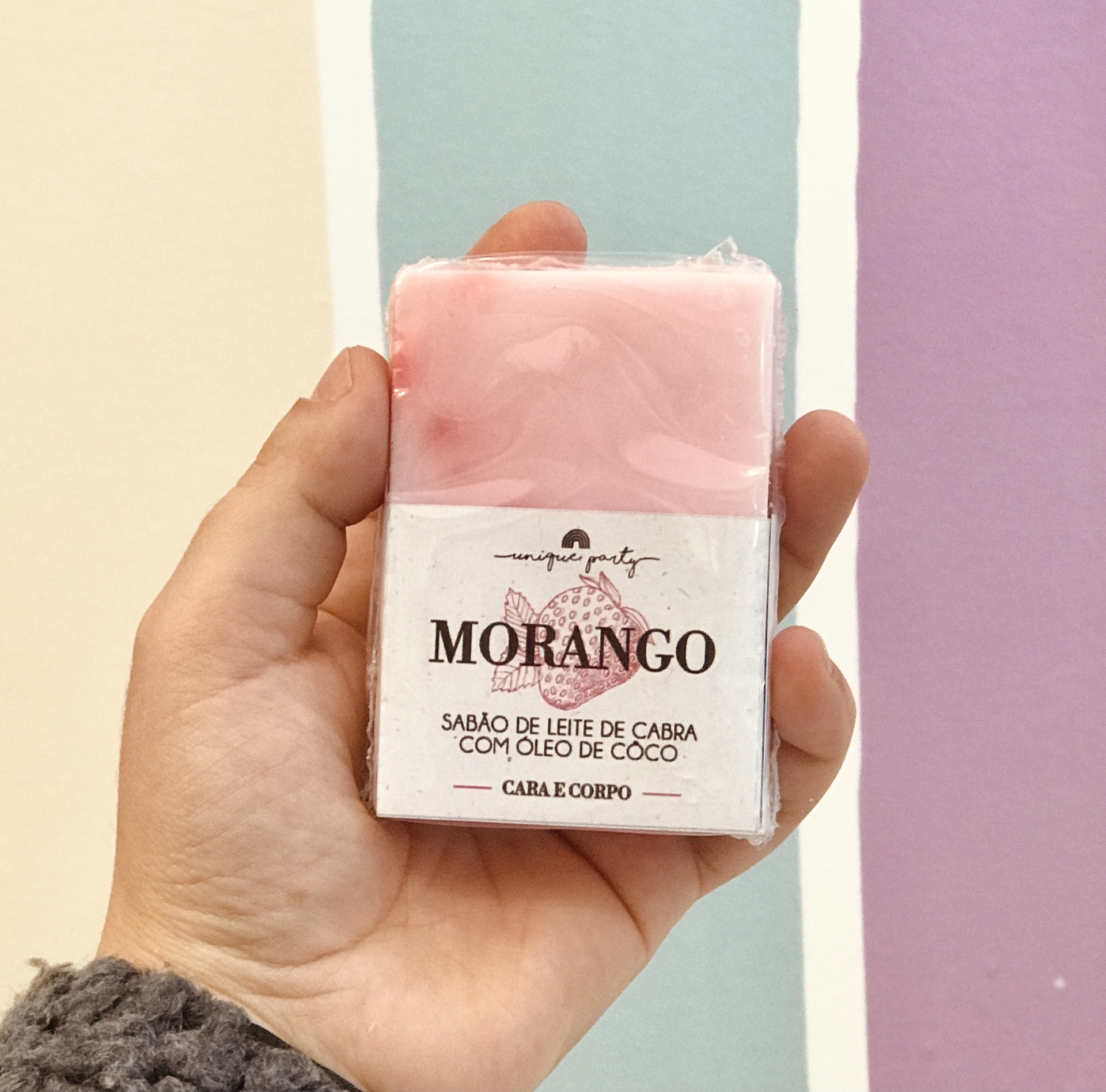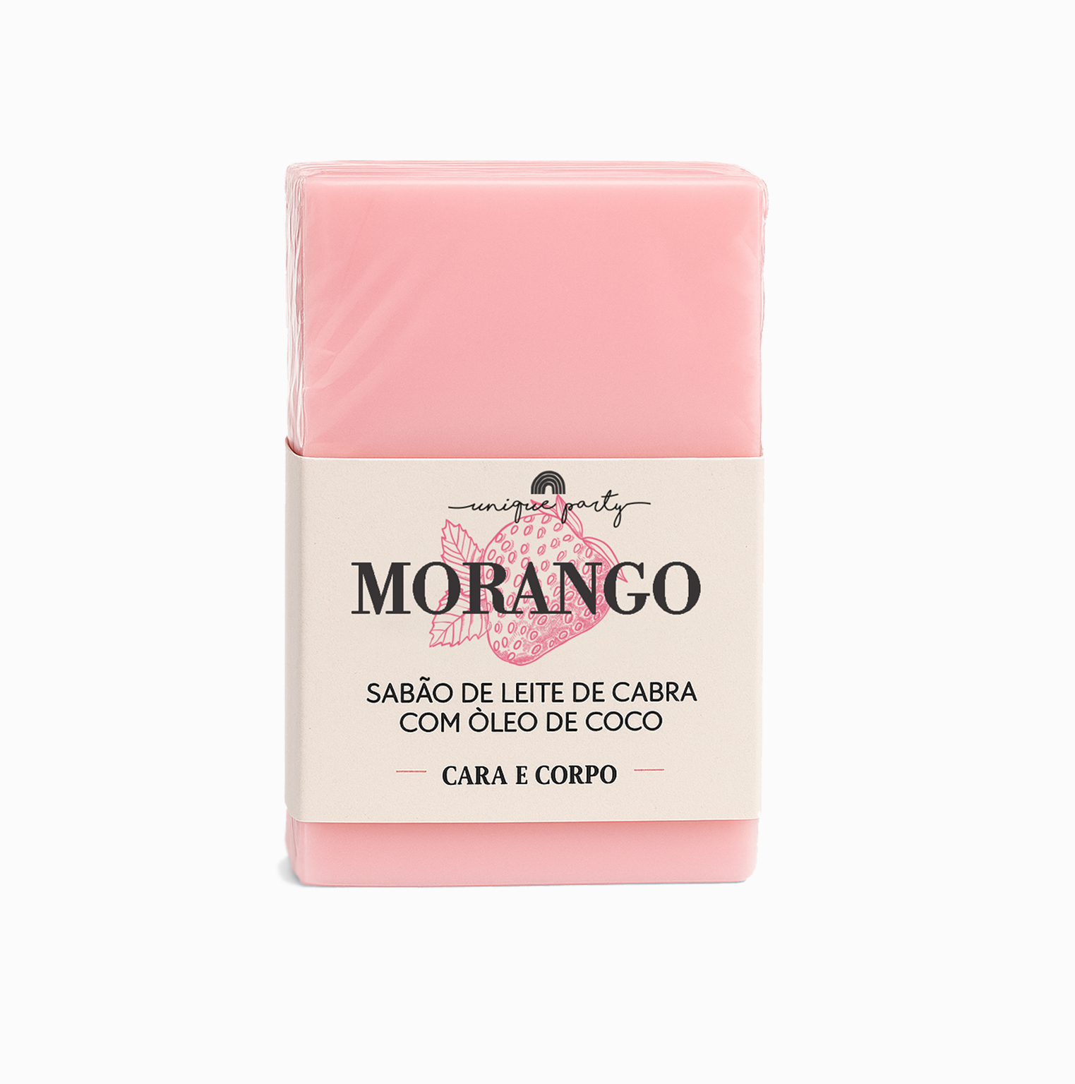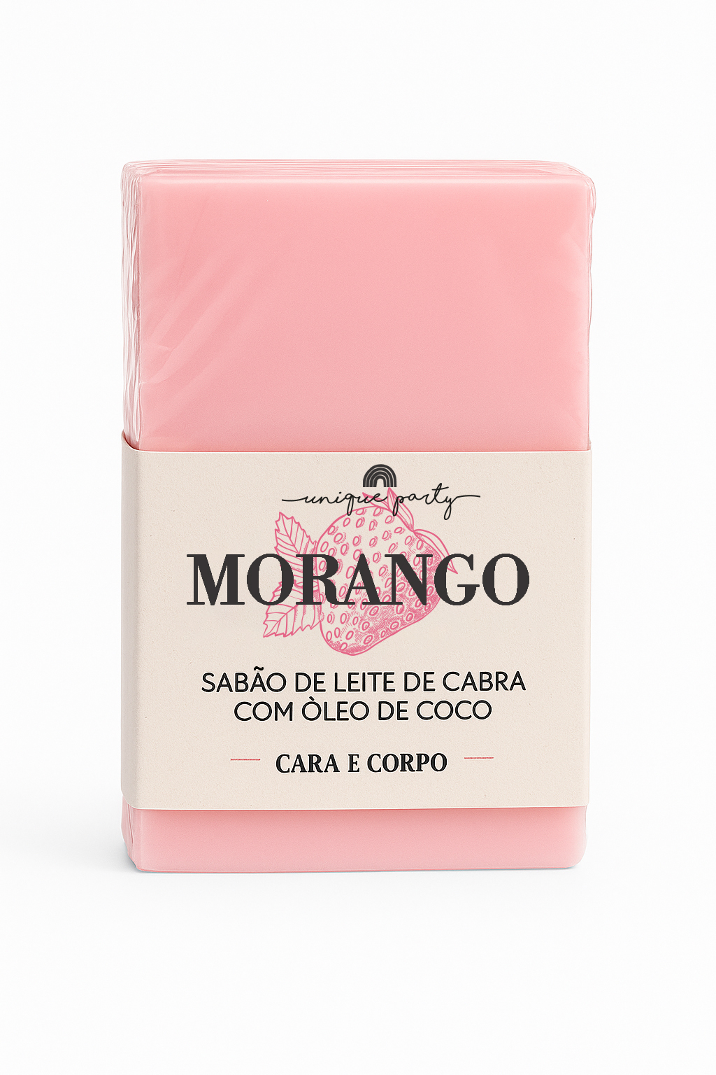 Sabão leite de cabra com óleo de côco, óleo essencial natural de Morango e Corante
