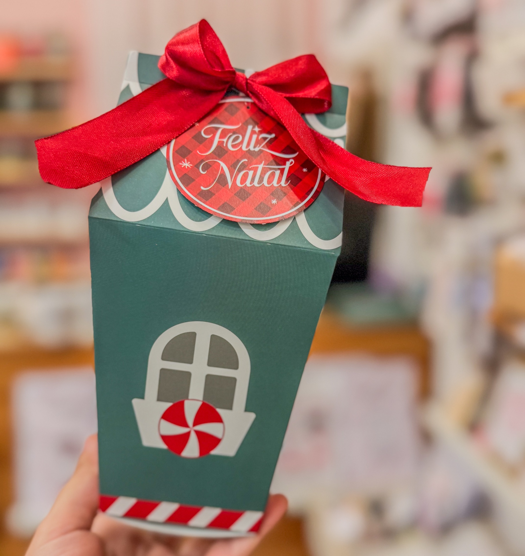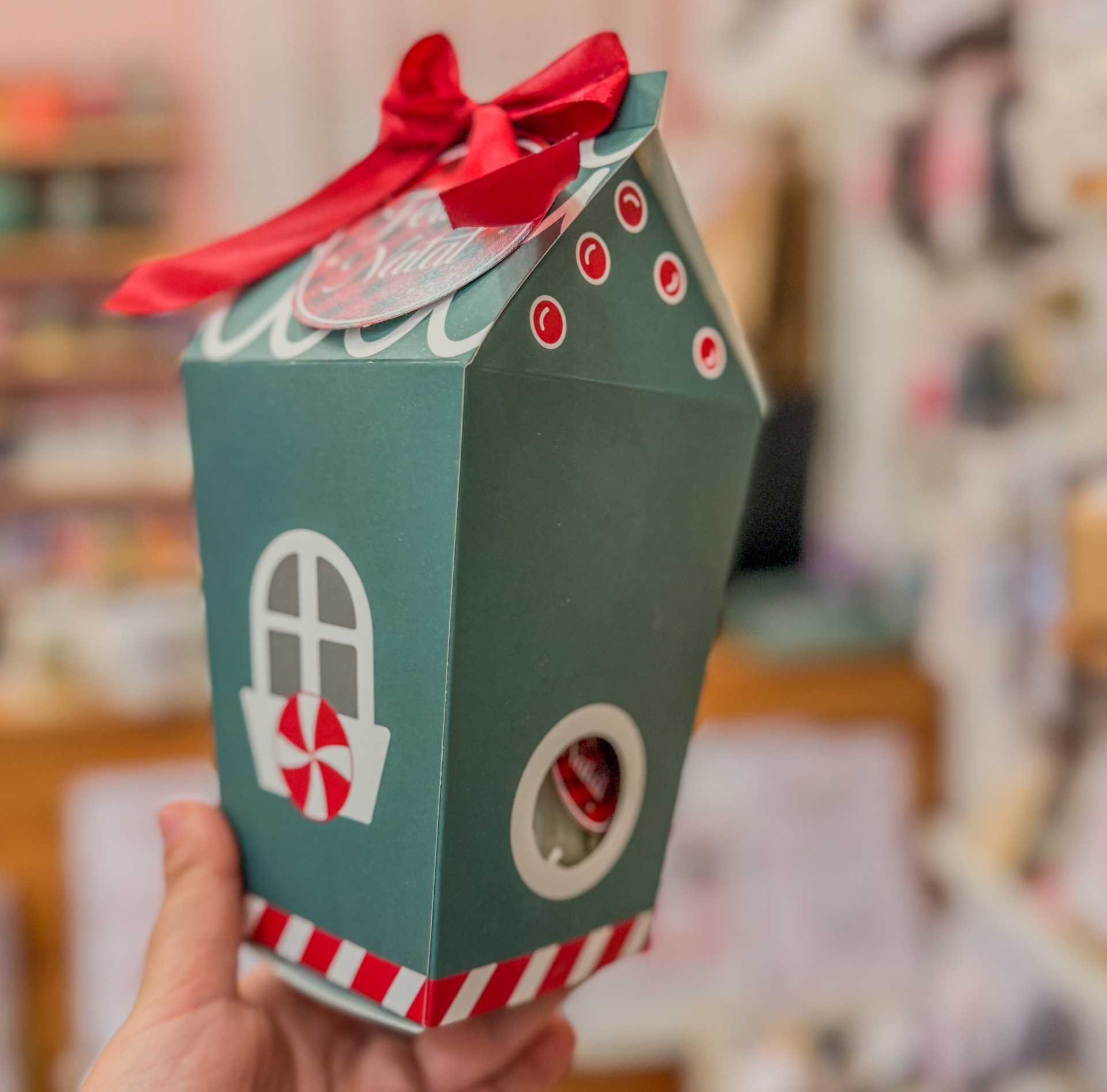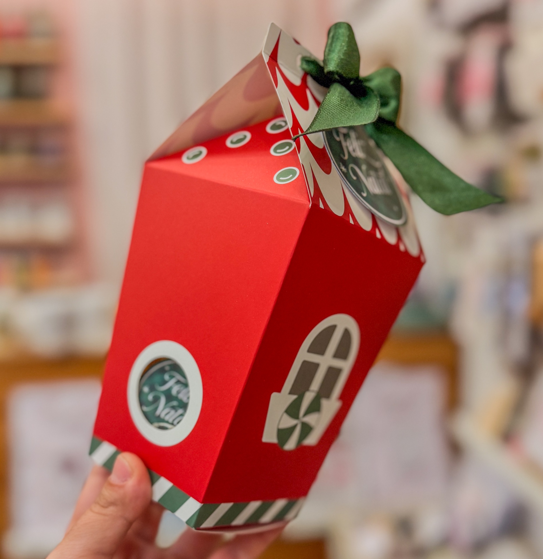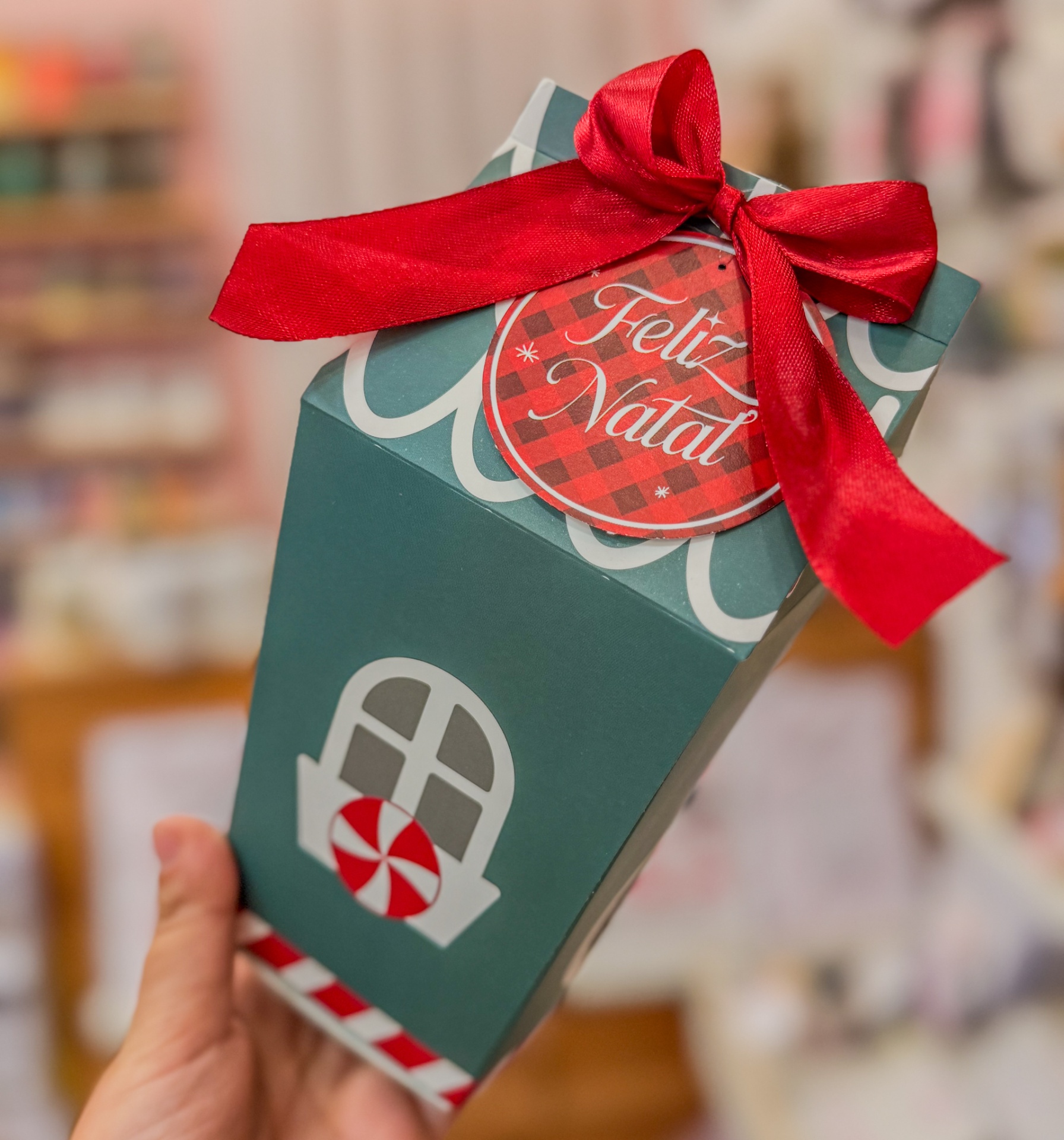 Espalha a magia do Natal com esta caixa casinha encantadora, perfeita para oferecer ou decorar 🎁