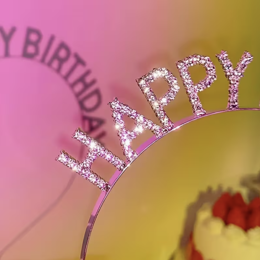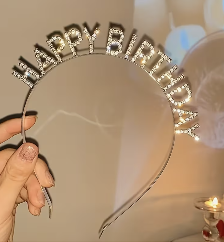 Celebra em grande estilo com esta elegante tiara Happy Birthday em metal com strass prateado, ideal para quem gosta de um toque glamoroso na festa 👑✨