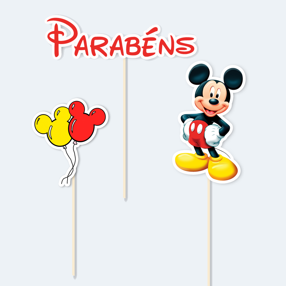– Topos Altos: 3 unidades para dar destaque ao bolo principal com o charme do rato mais famoso do mundo.