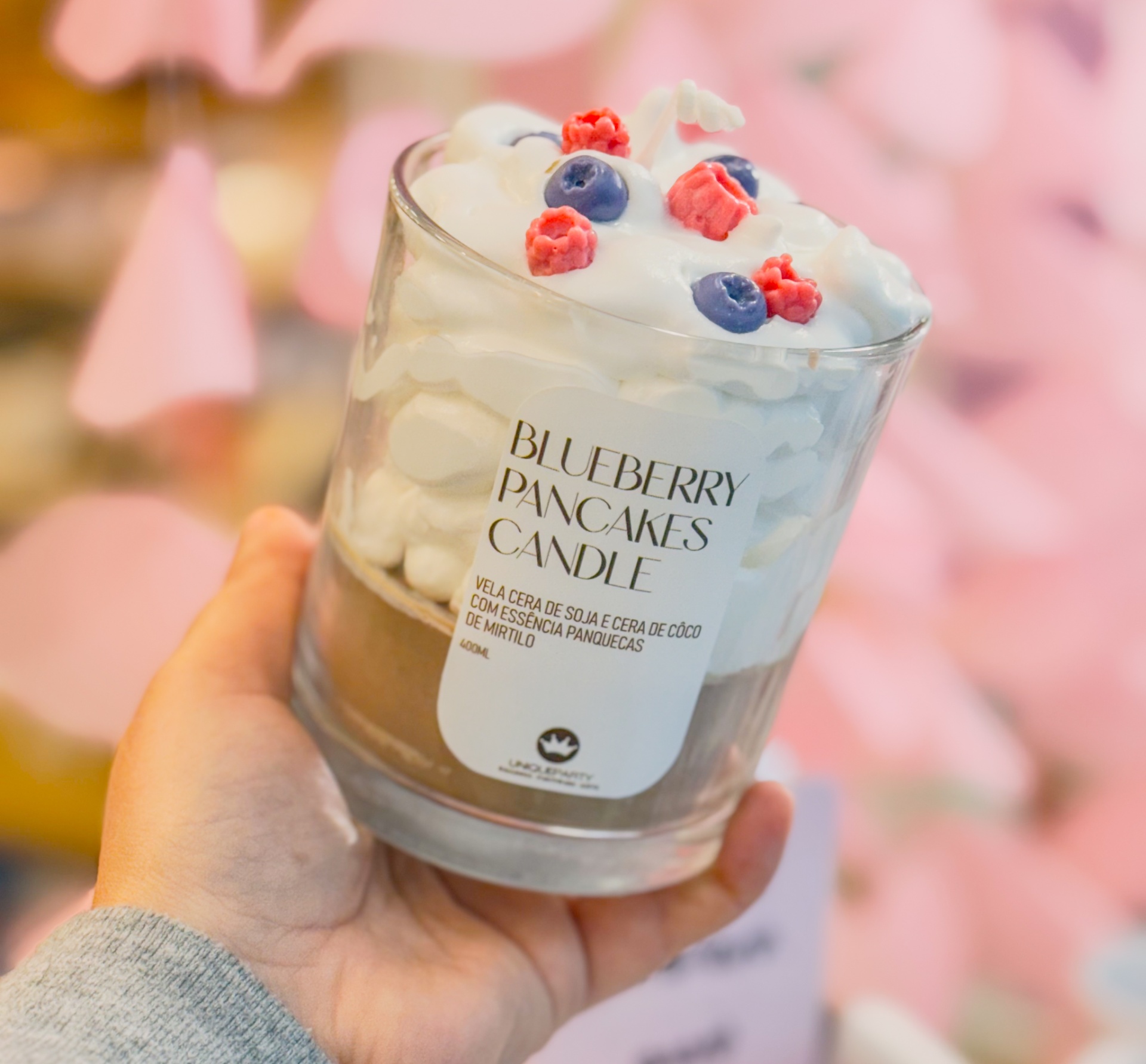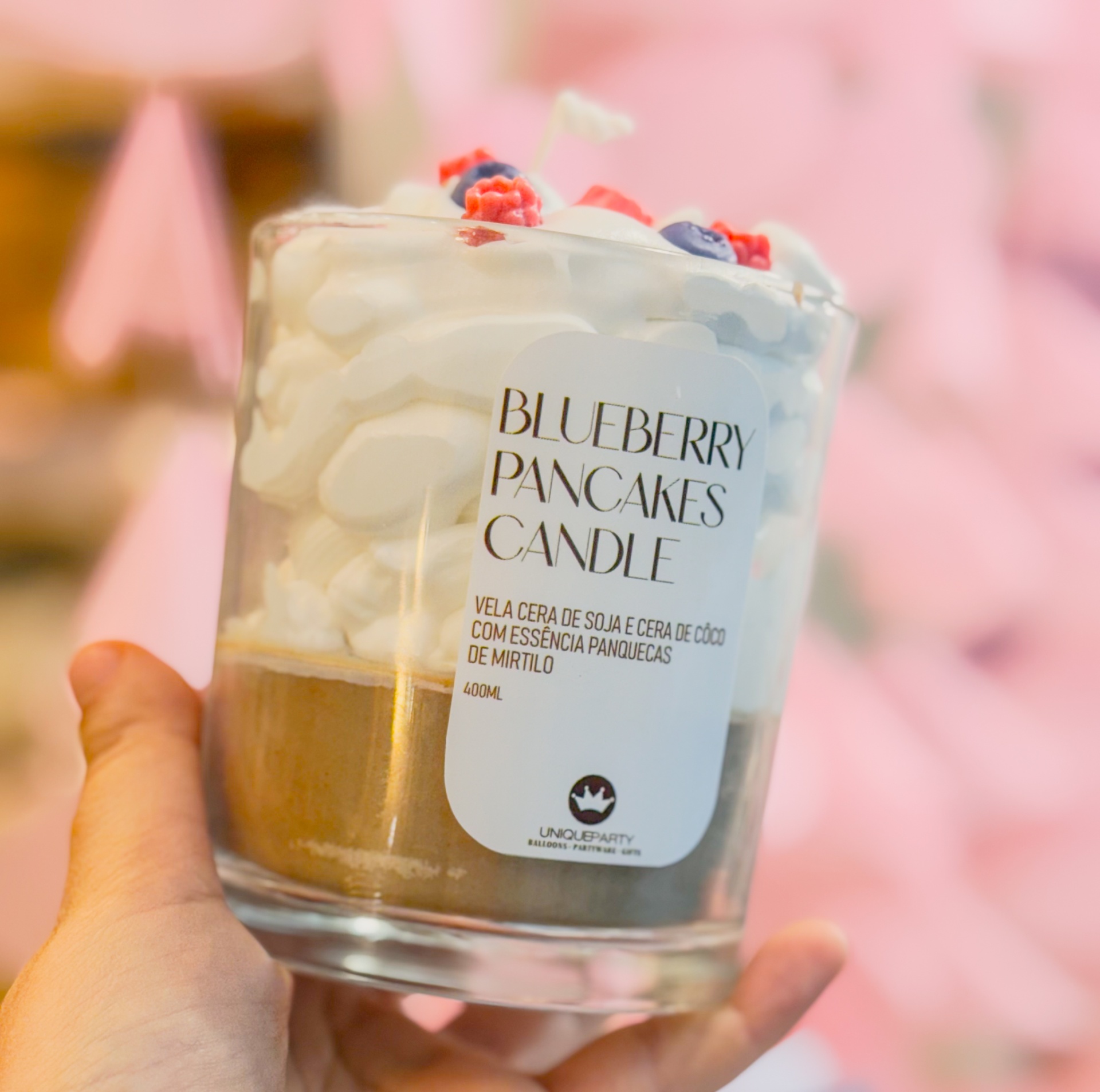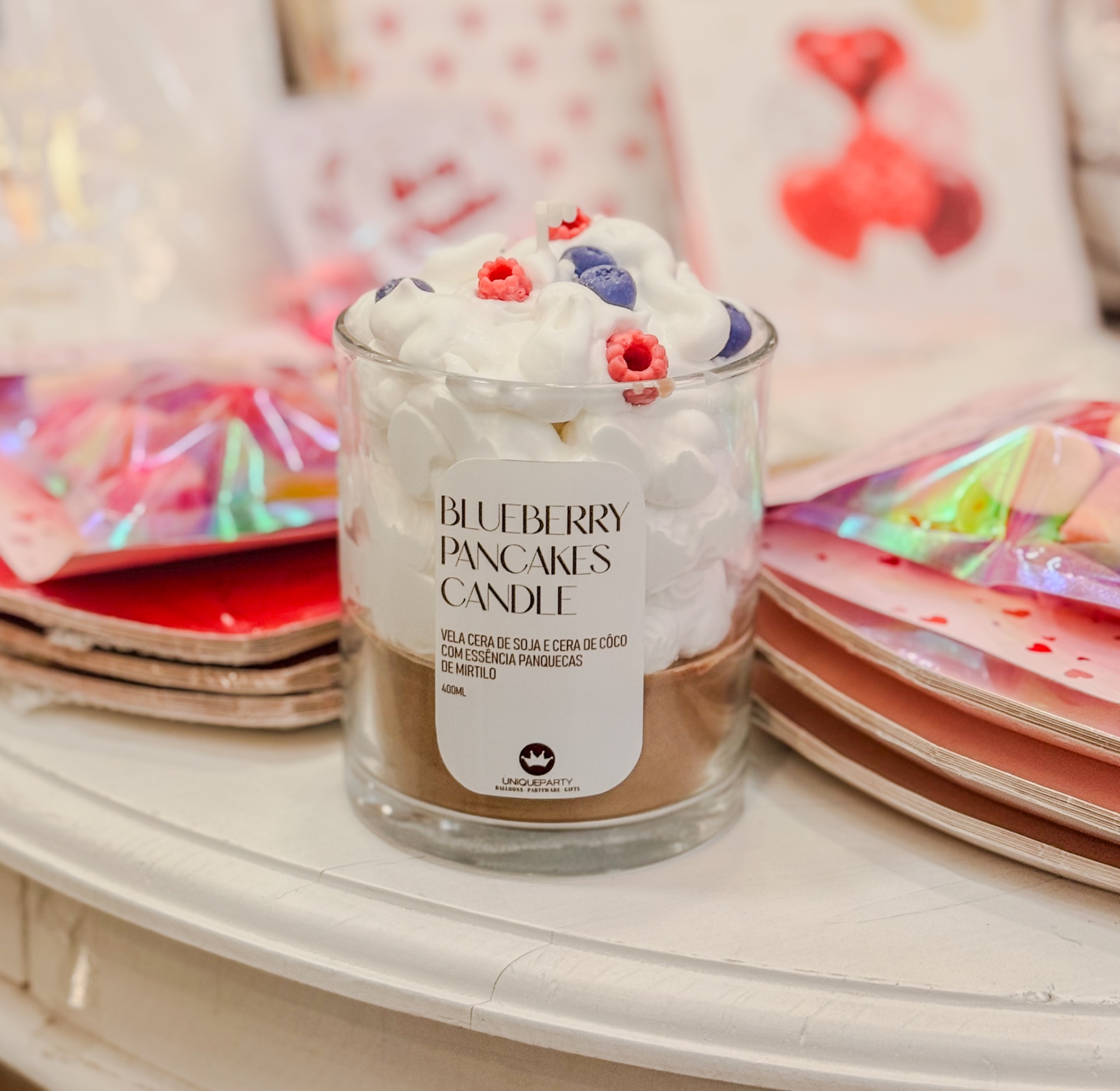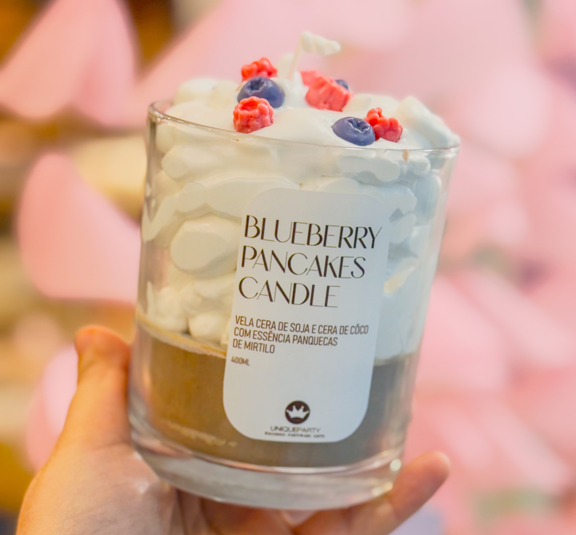 Presenteie você ou um ente querido com a mistura perfeita de estilo e aroma com nossa vela de Panquecas com mirtilos.