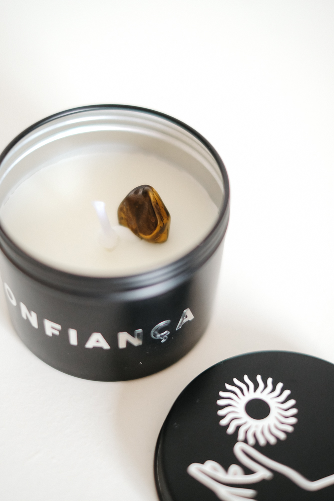 Vela do Propósito - Confiança com Cristal Olho de Tigre