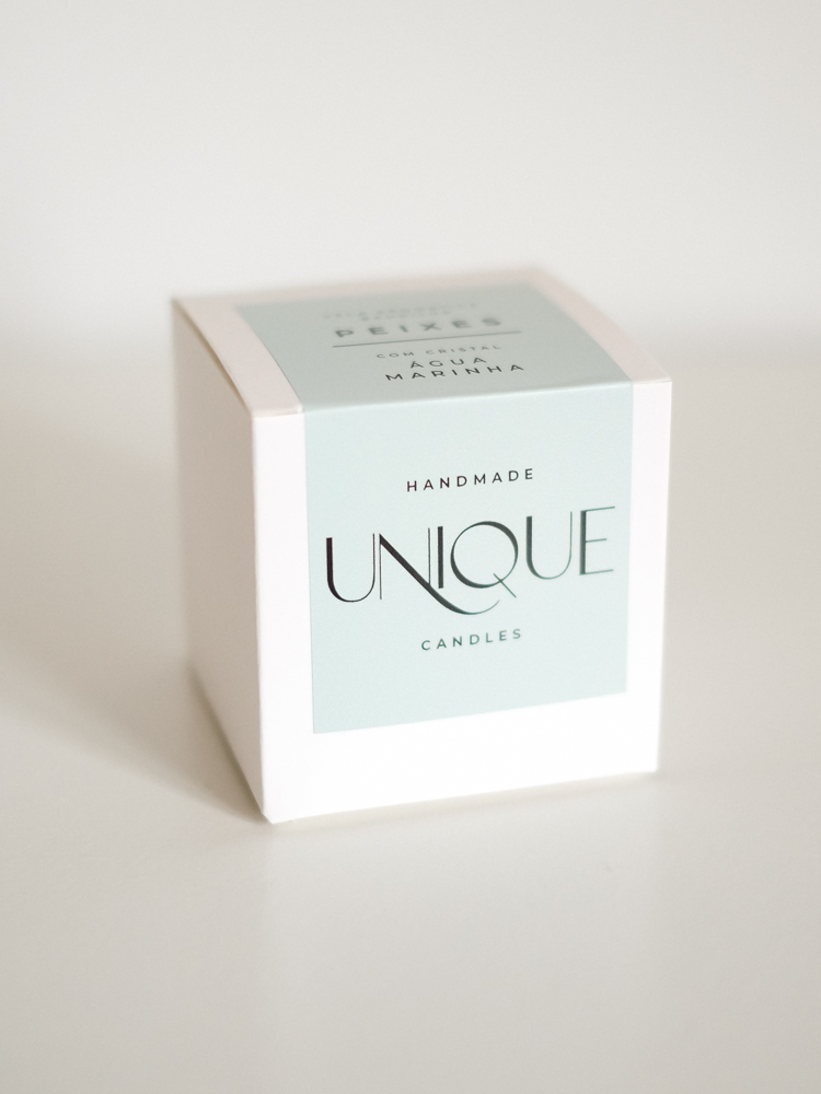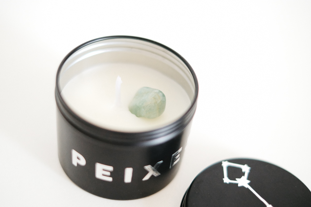 Vela do Zodíaco - Signo Peixes com cristal Água Marinha