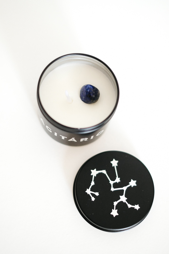 Vela do Zodíaco - Signo Sagitário com cristal Sodalite
