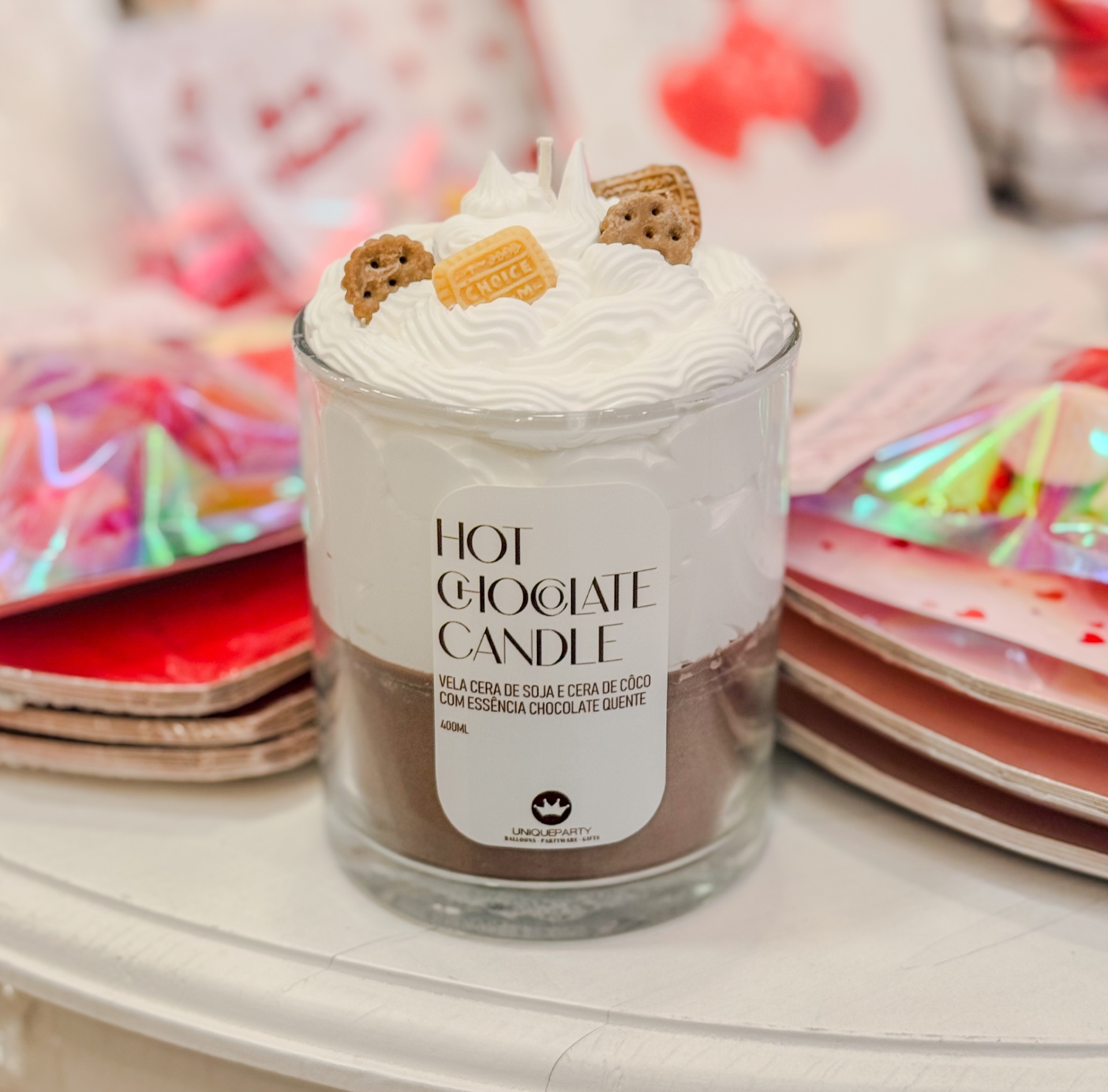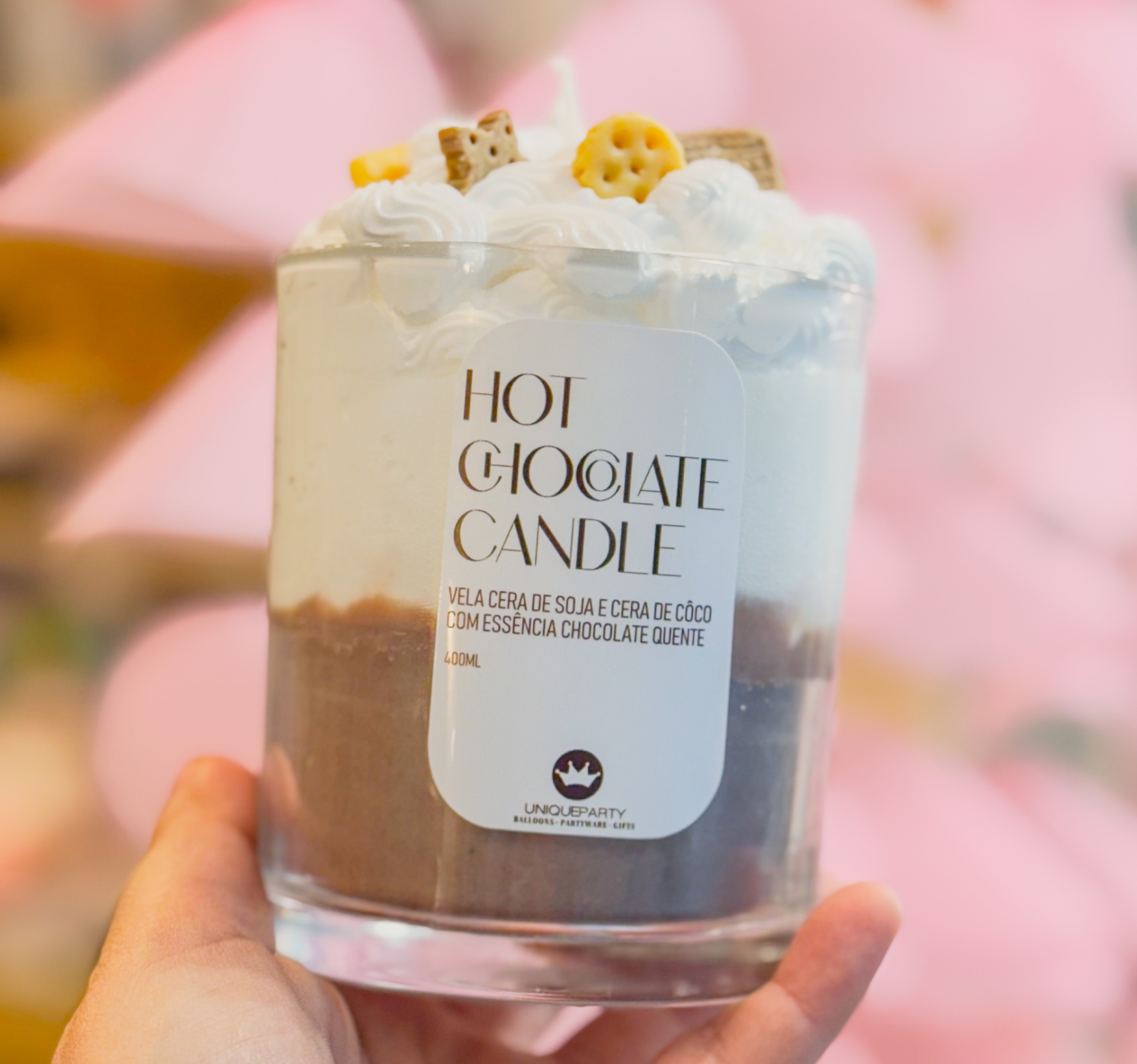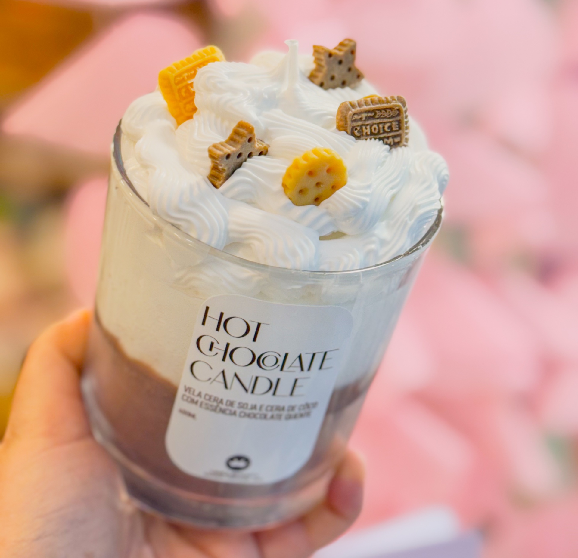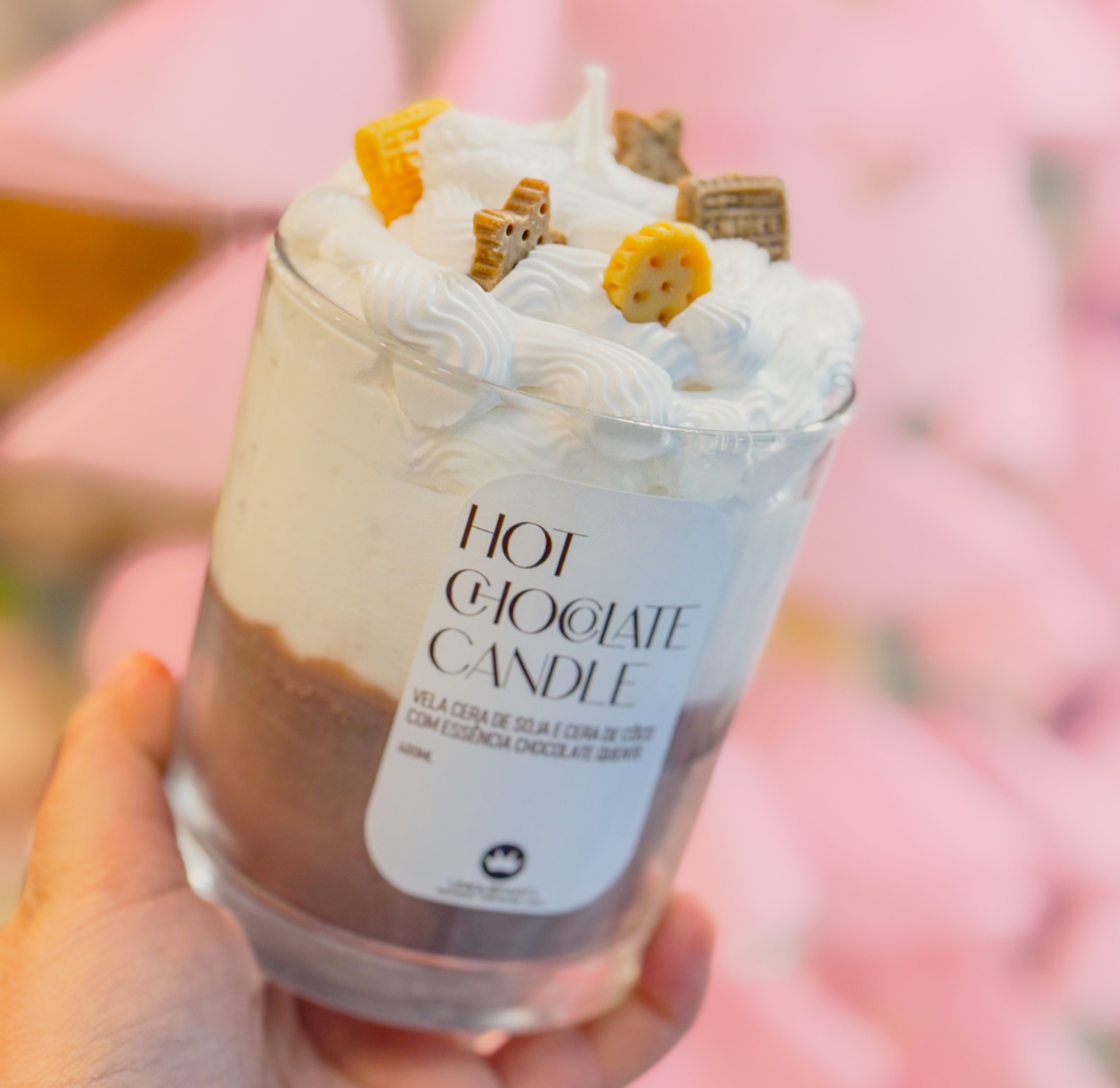 O "chantilly" feito com a cera de côco conferem-lhe uma aparência realista e charmosa de chocolate quente, tornando-o uma peça de destaque em qualquer ambiente. O delicioso aroma a chocolate preenche o seu espaço com o aroma rico e reconfortante do chocolate quente acabado de fazer, perfeito para criar um ambiente acolhedor e relaxante.