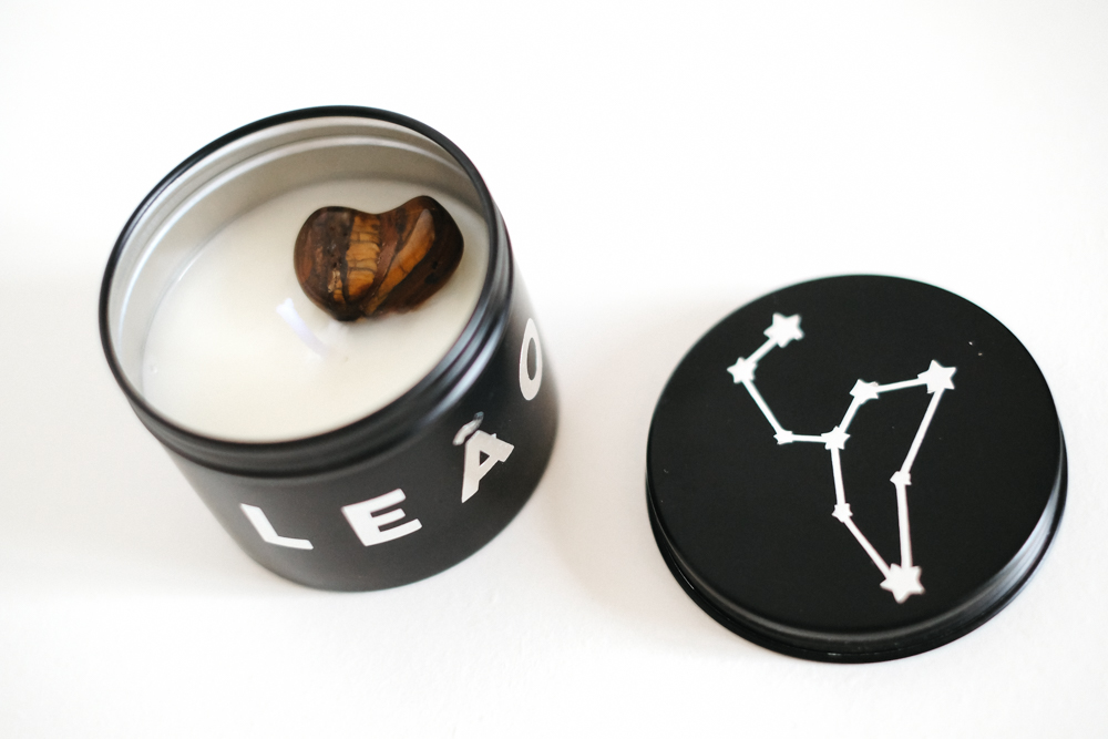 Vela do Zodíaco - Signo Leão com cristal Olho de Tigre