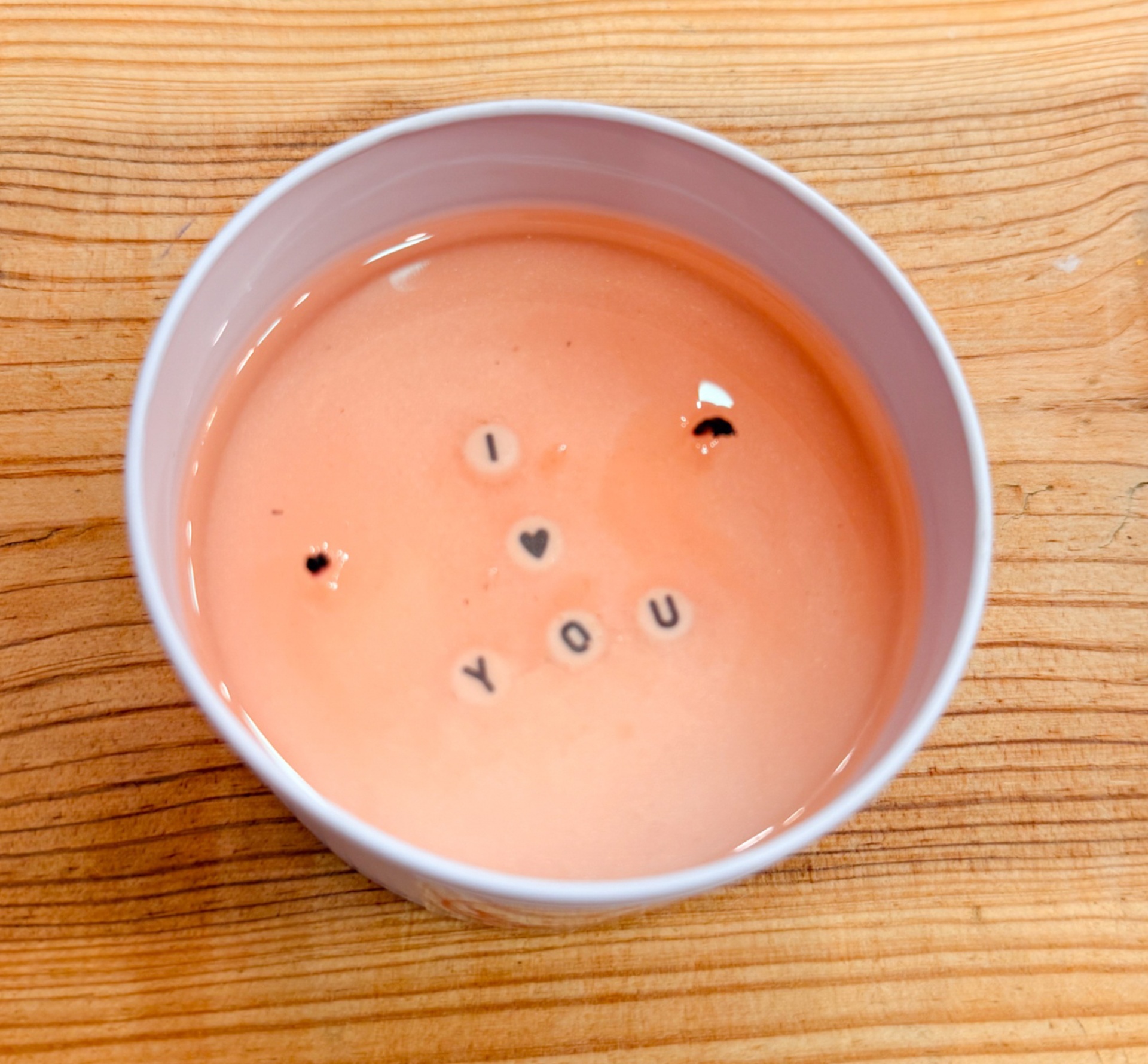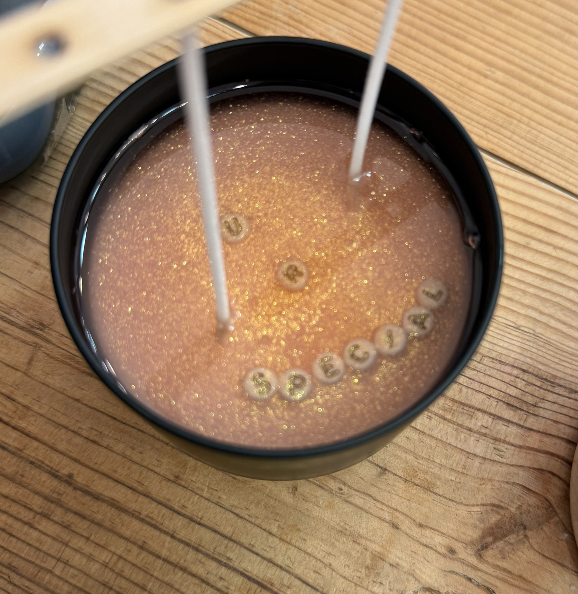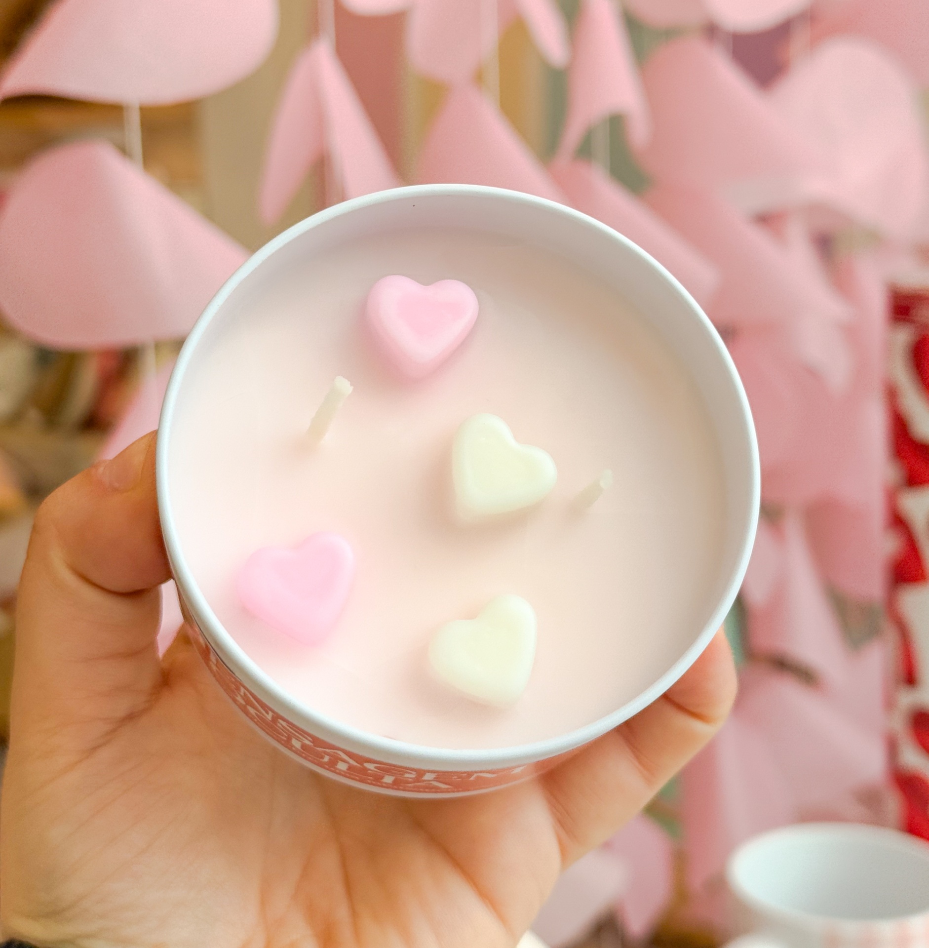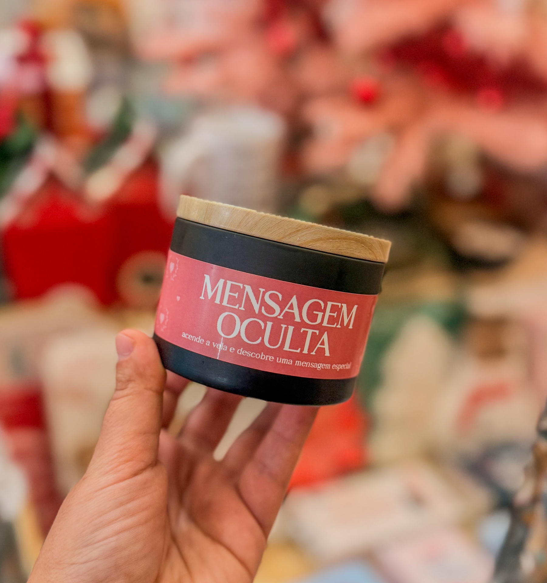 Vela artesanal em recipiente metálico, com aroma delicioso a baunilha, de cera de soja com 2 pavios encerados e mensagem oculta - I <3 YOU ou U R SPECIAL