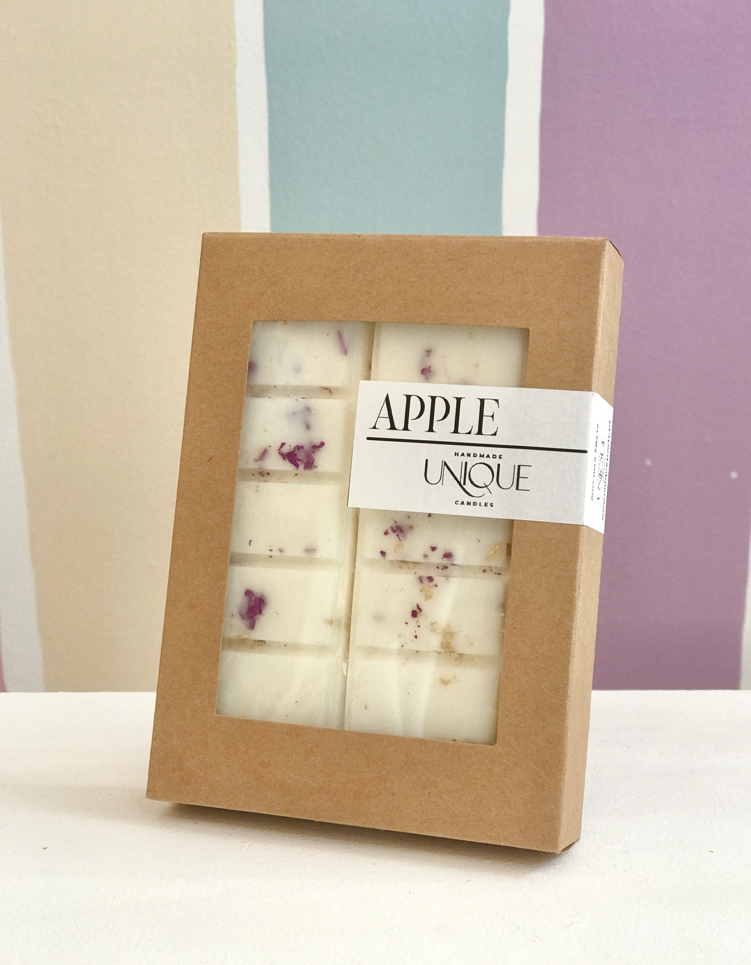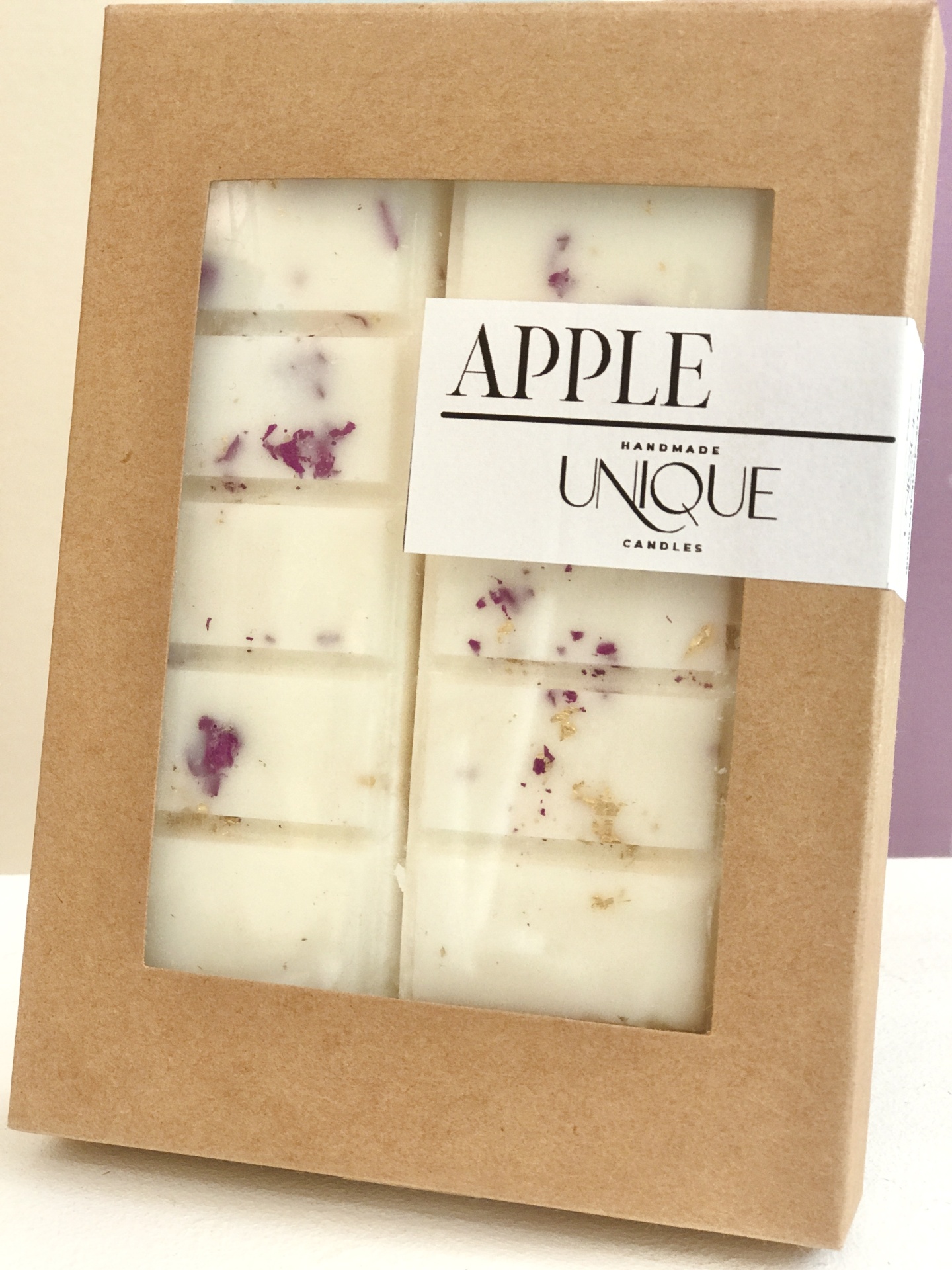 Os wax melts da Unique Candles são feitos manualmente e de forma artesanal, usando cera de soja com detalhes cuidadosos.